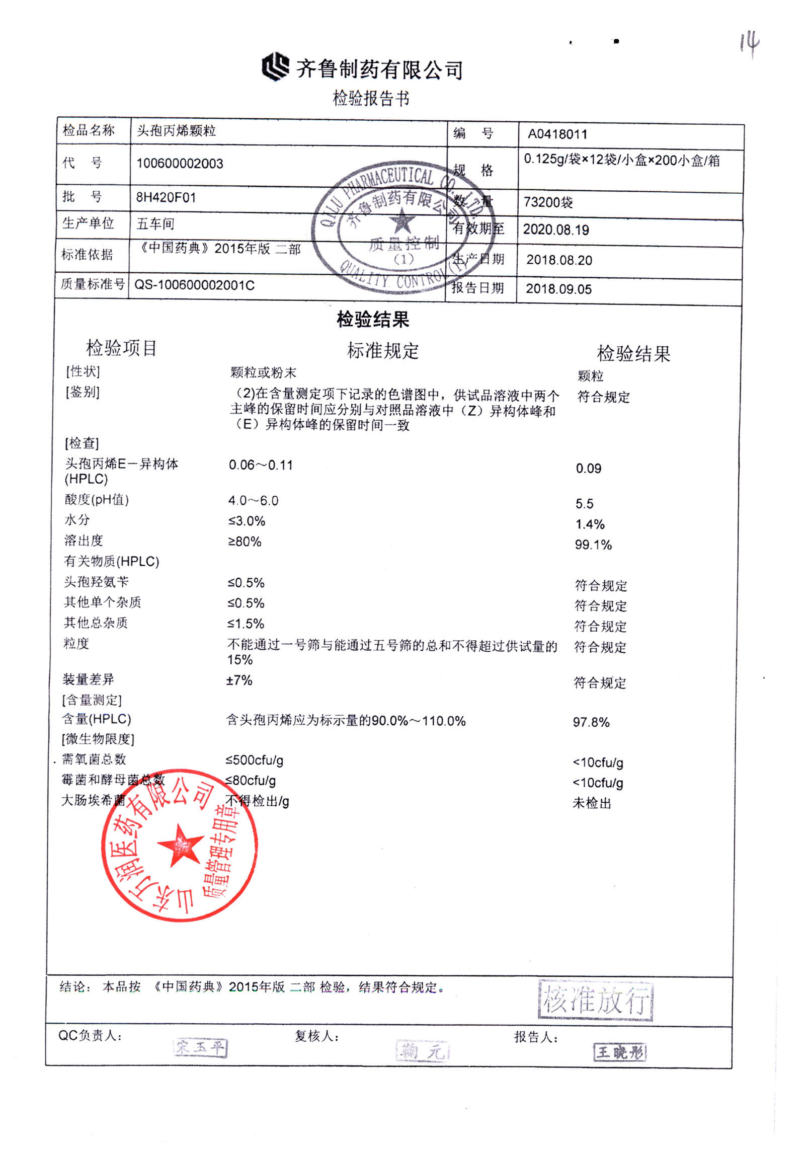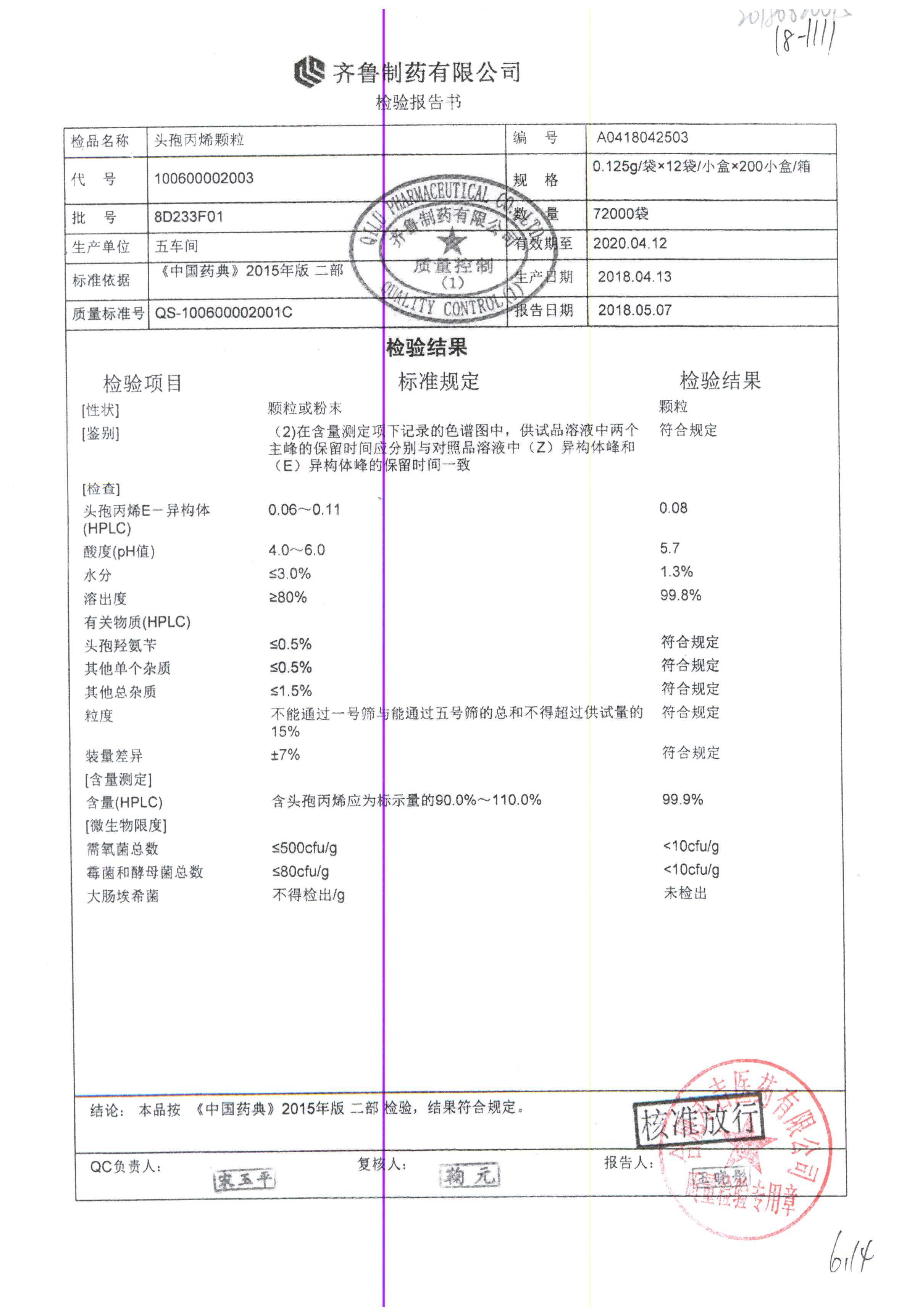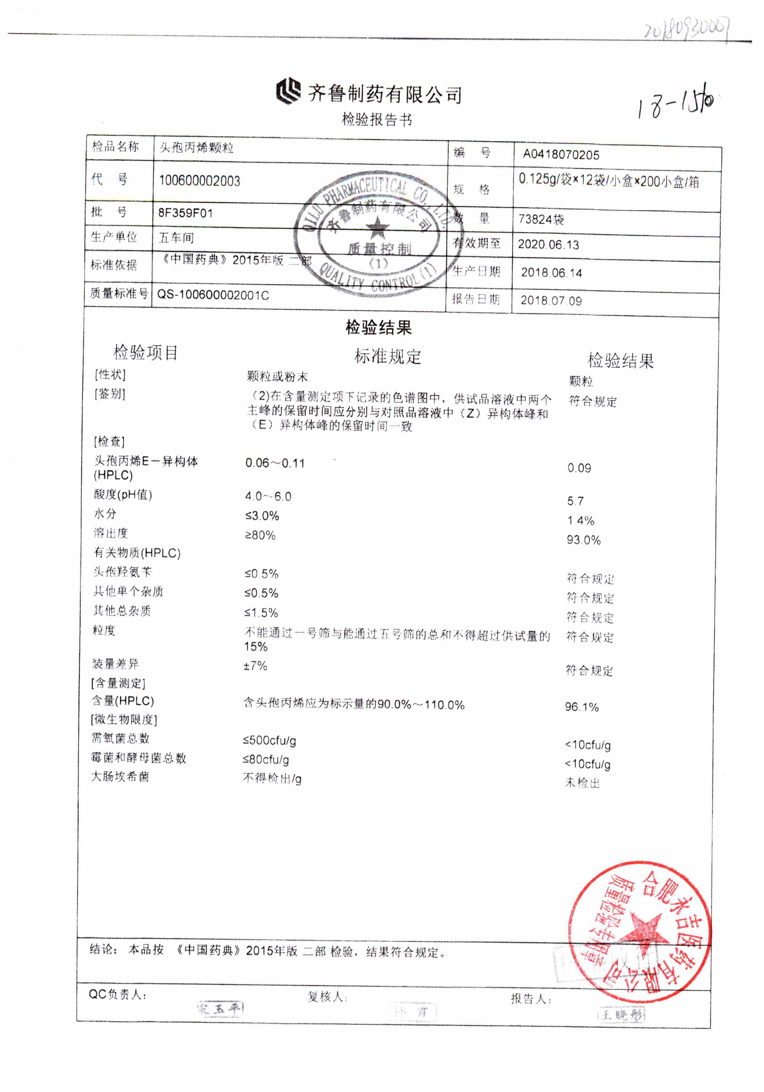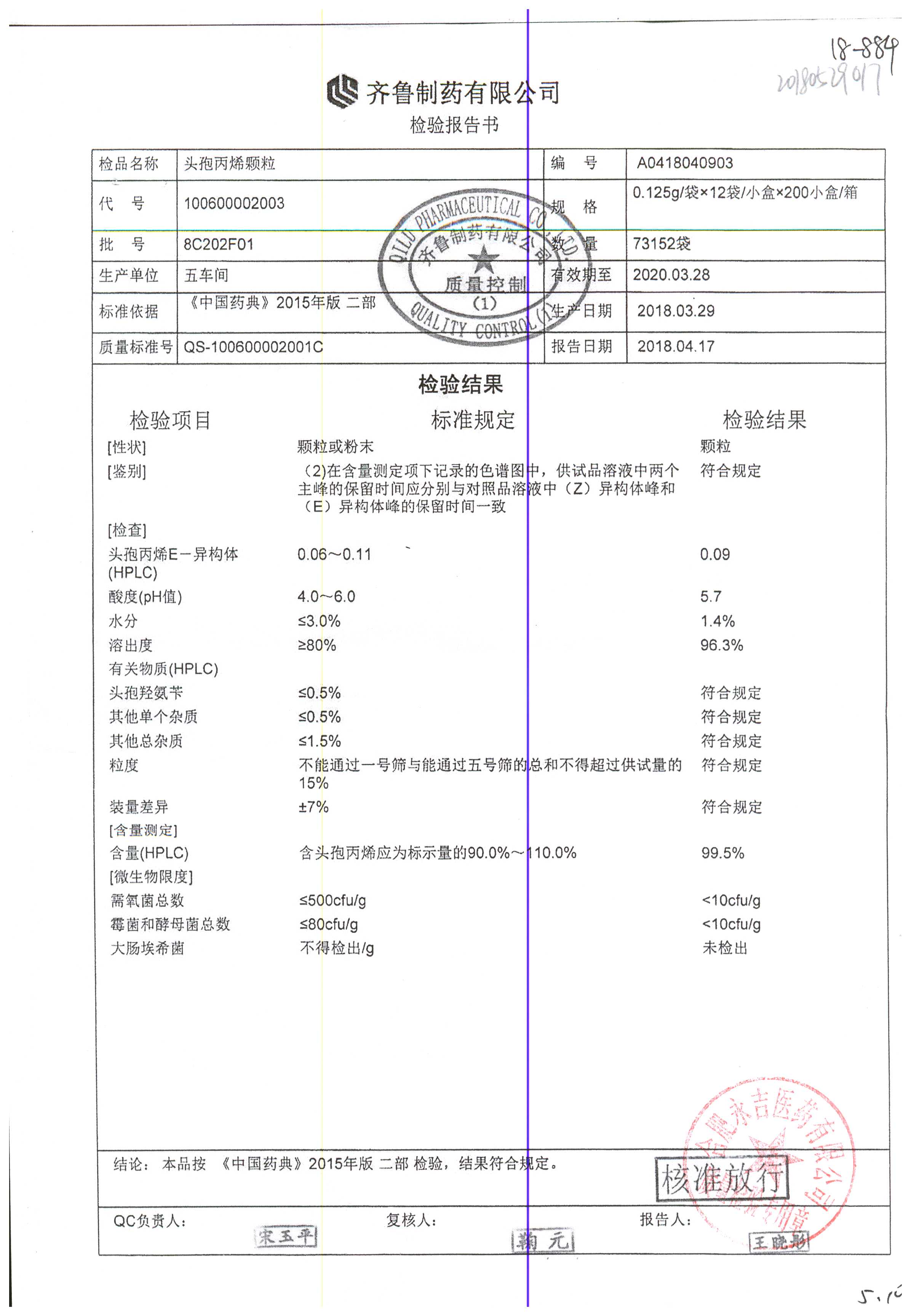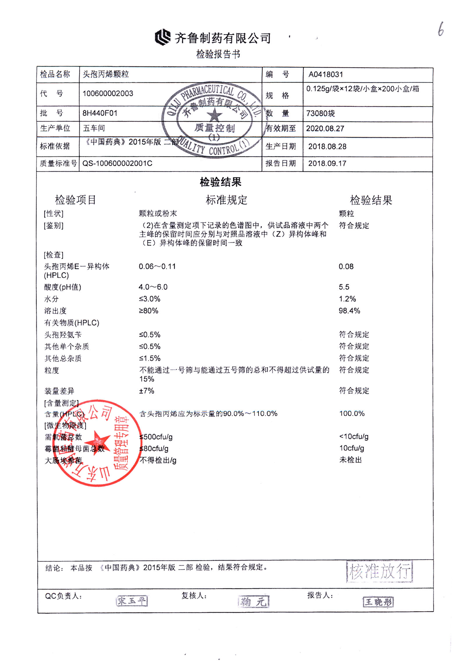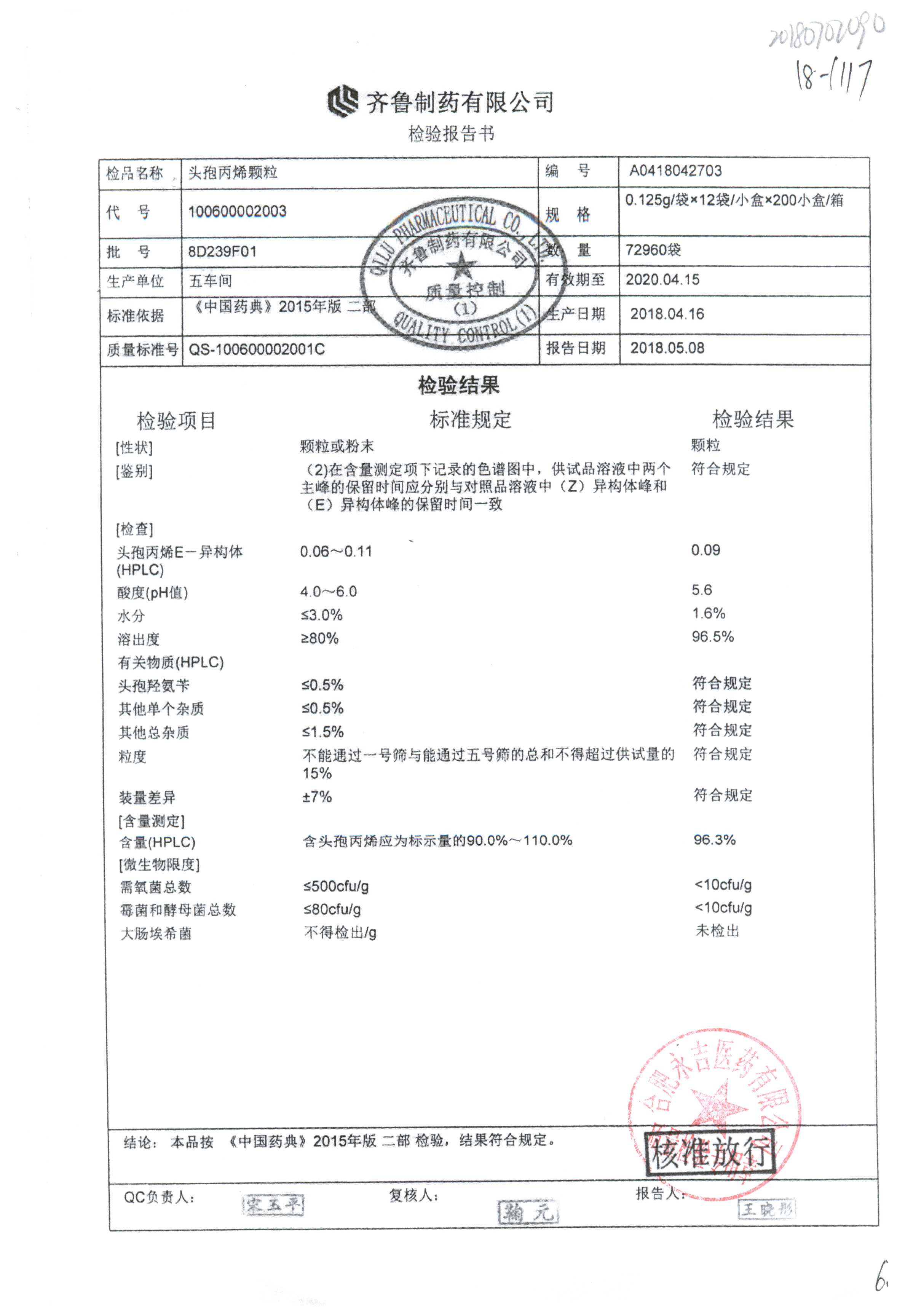 | 頭孢丙烯顆粒 | 0.125g*12袋 | 8H420F01 | 查看詳情 |