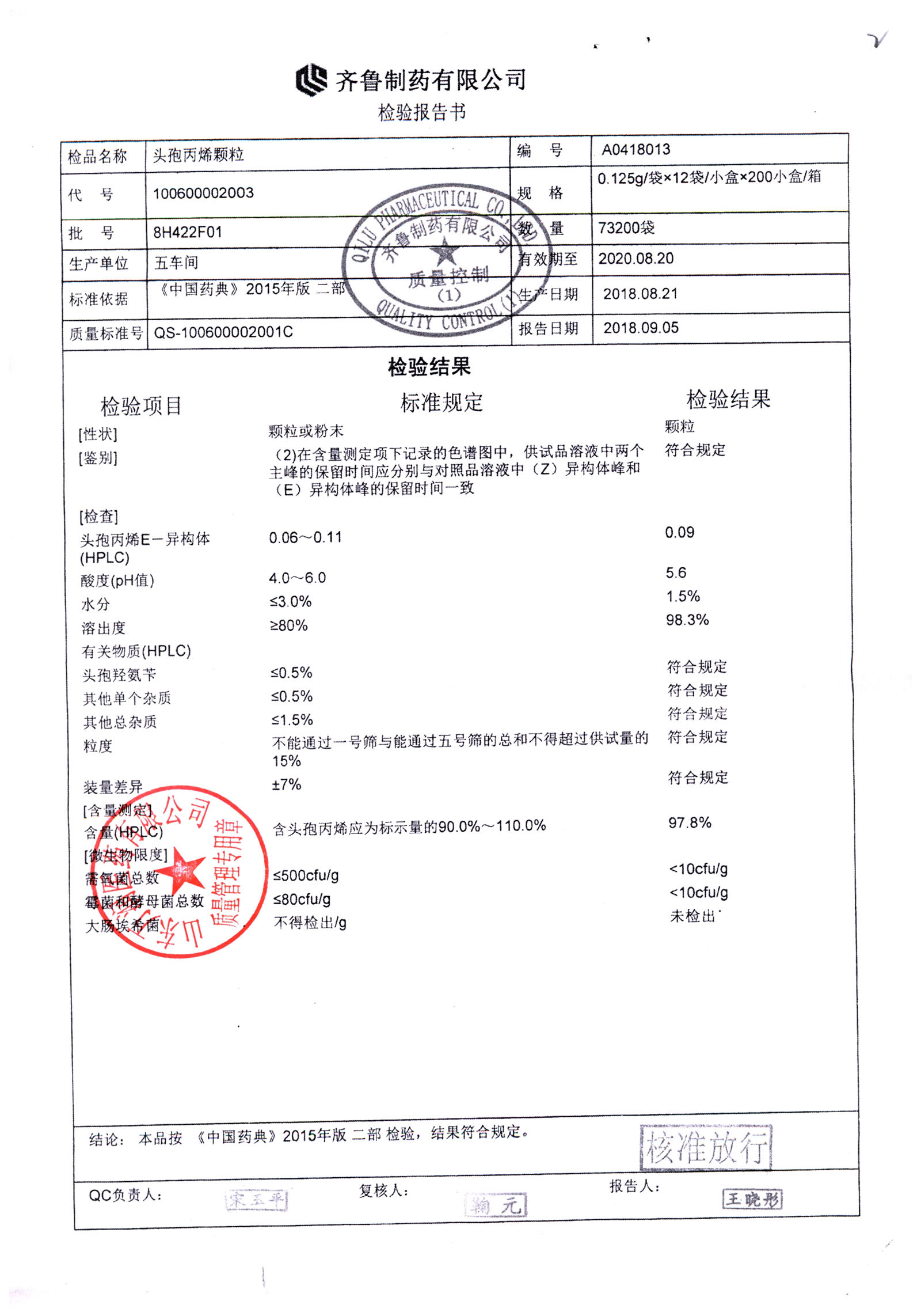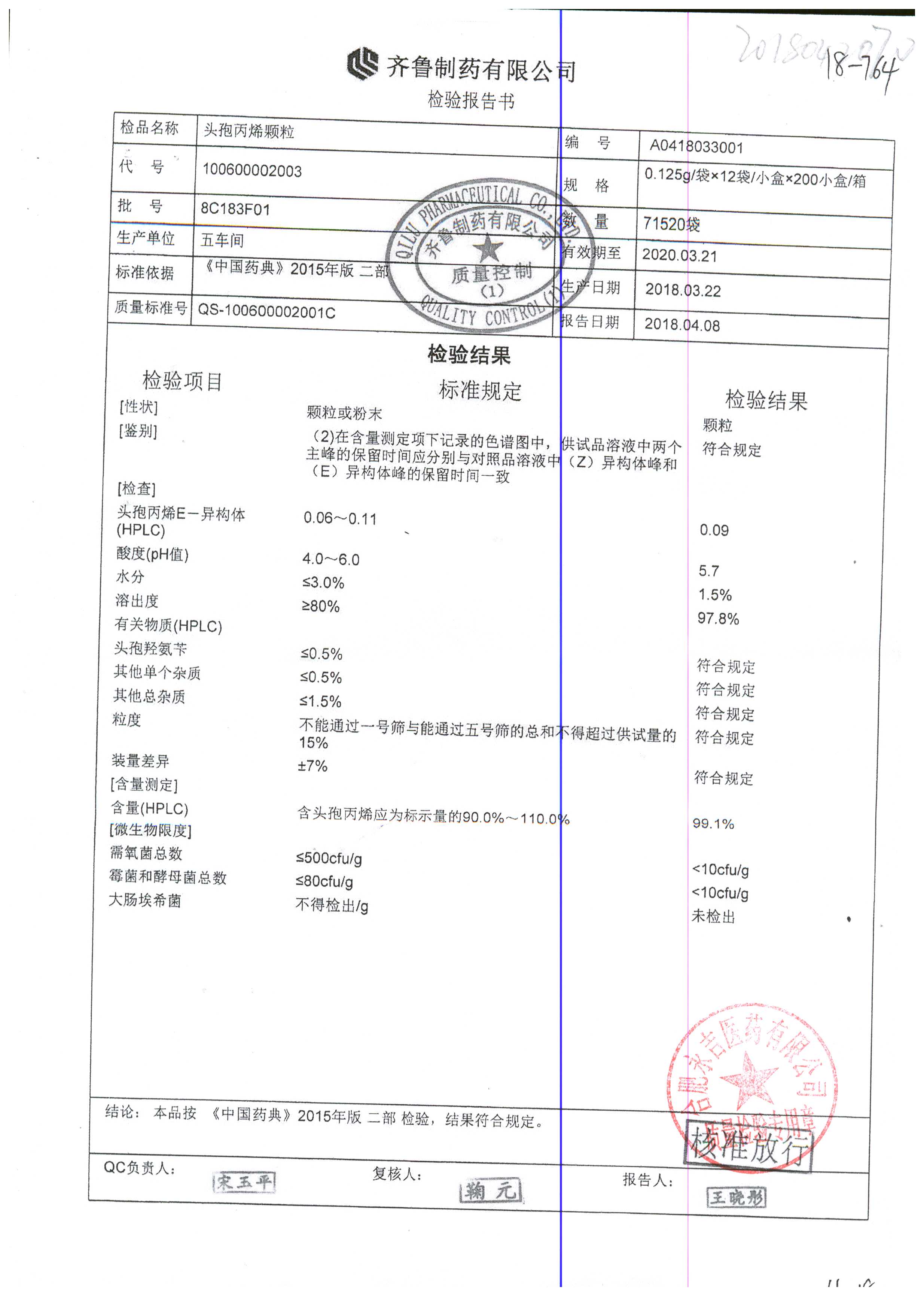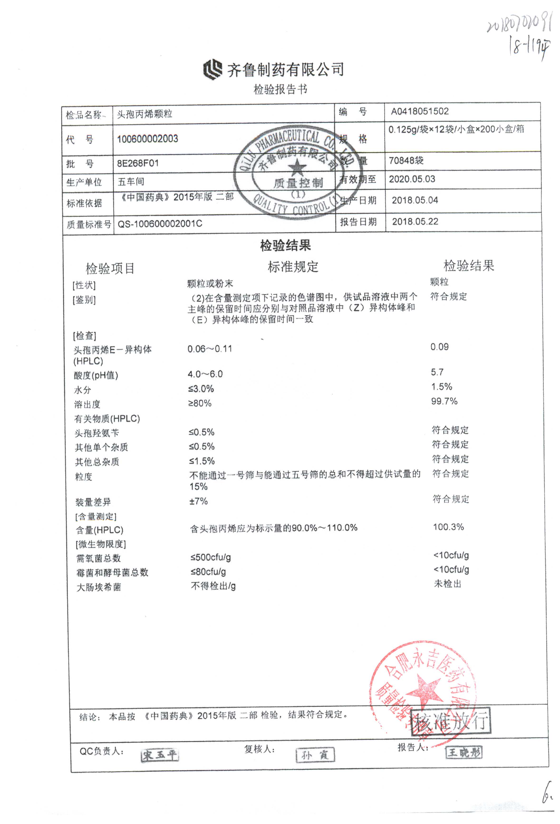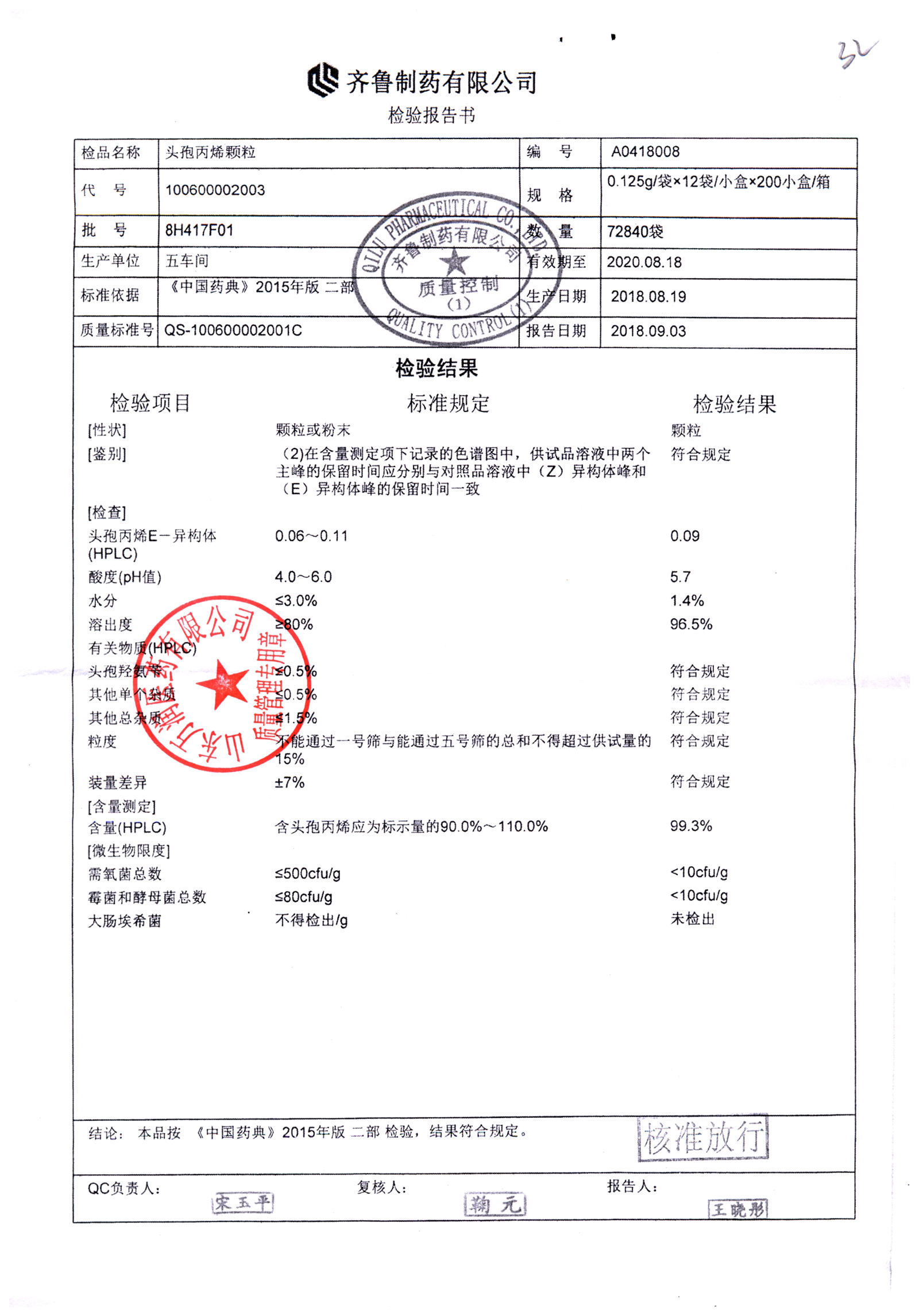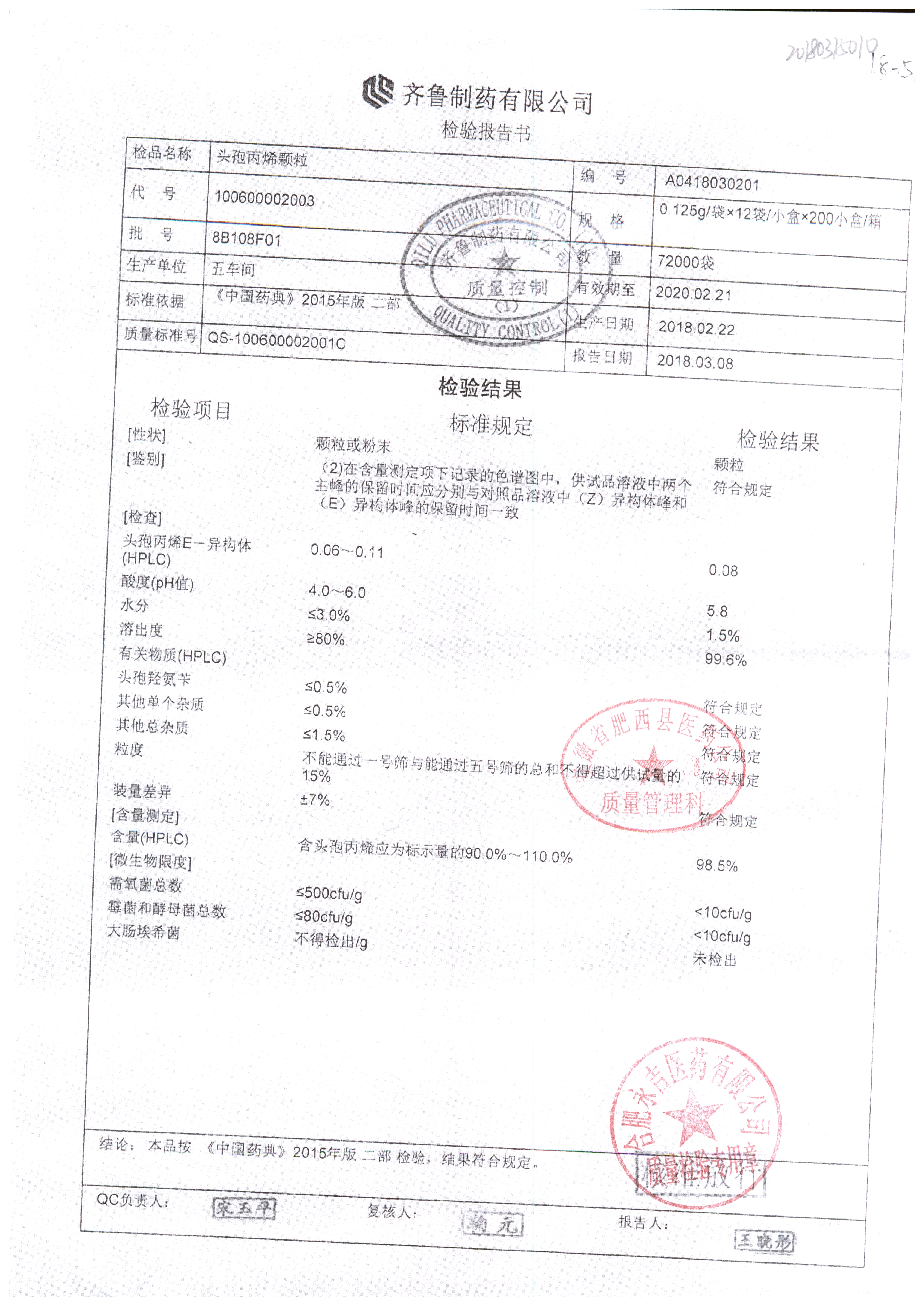 | 頭孢丙烯顆粒 | 0.125g*12袋 | 8H420F01 | 查看詳情 |