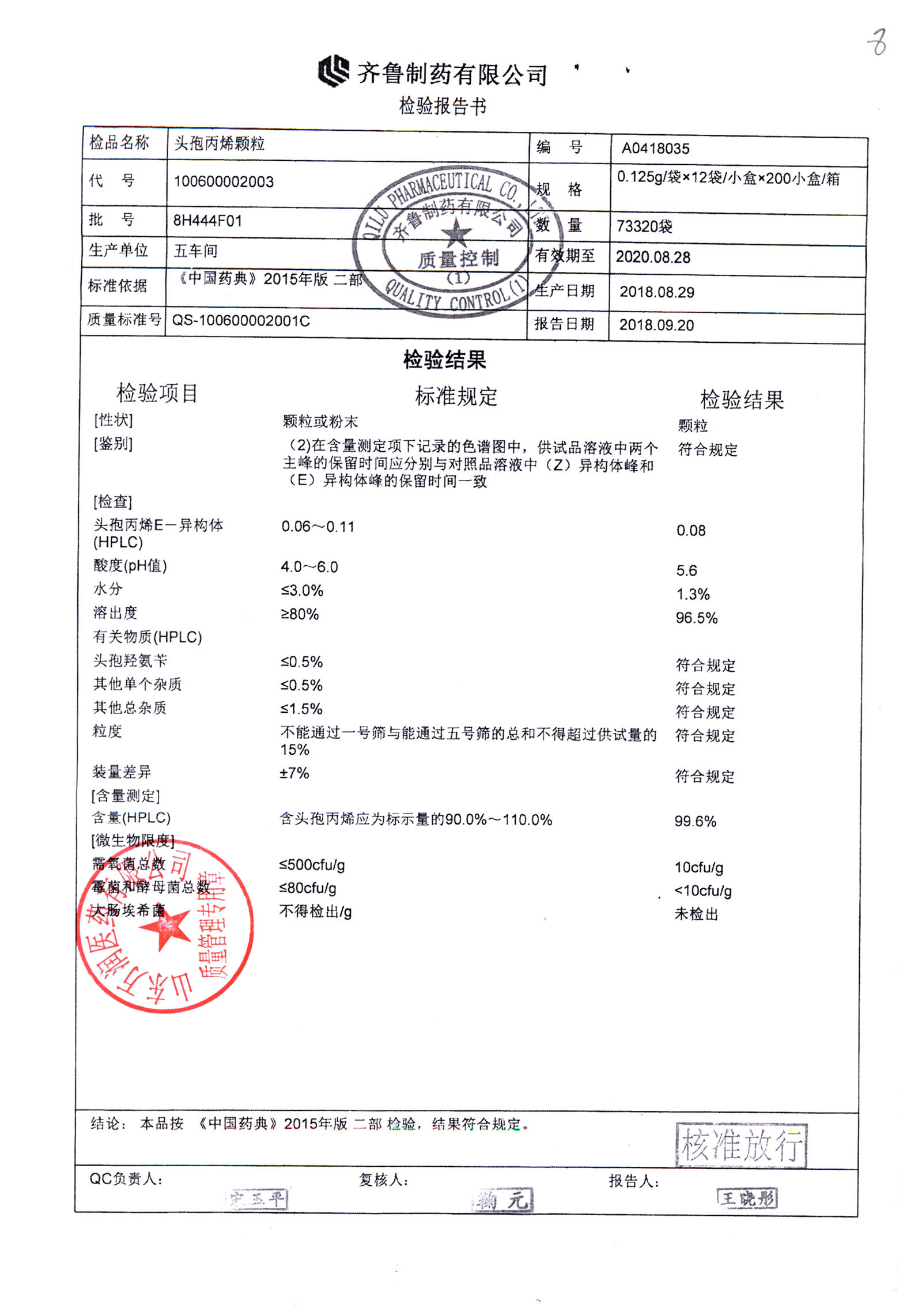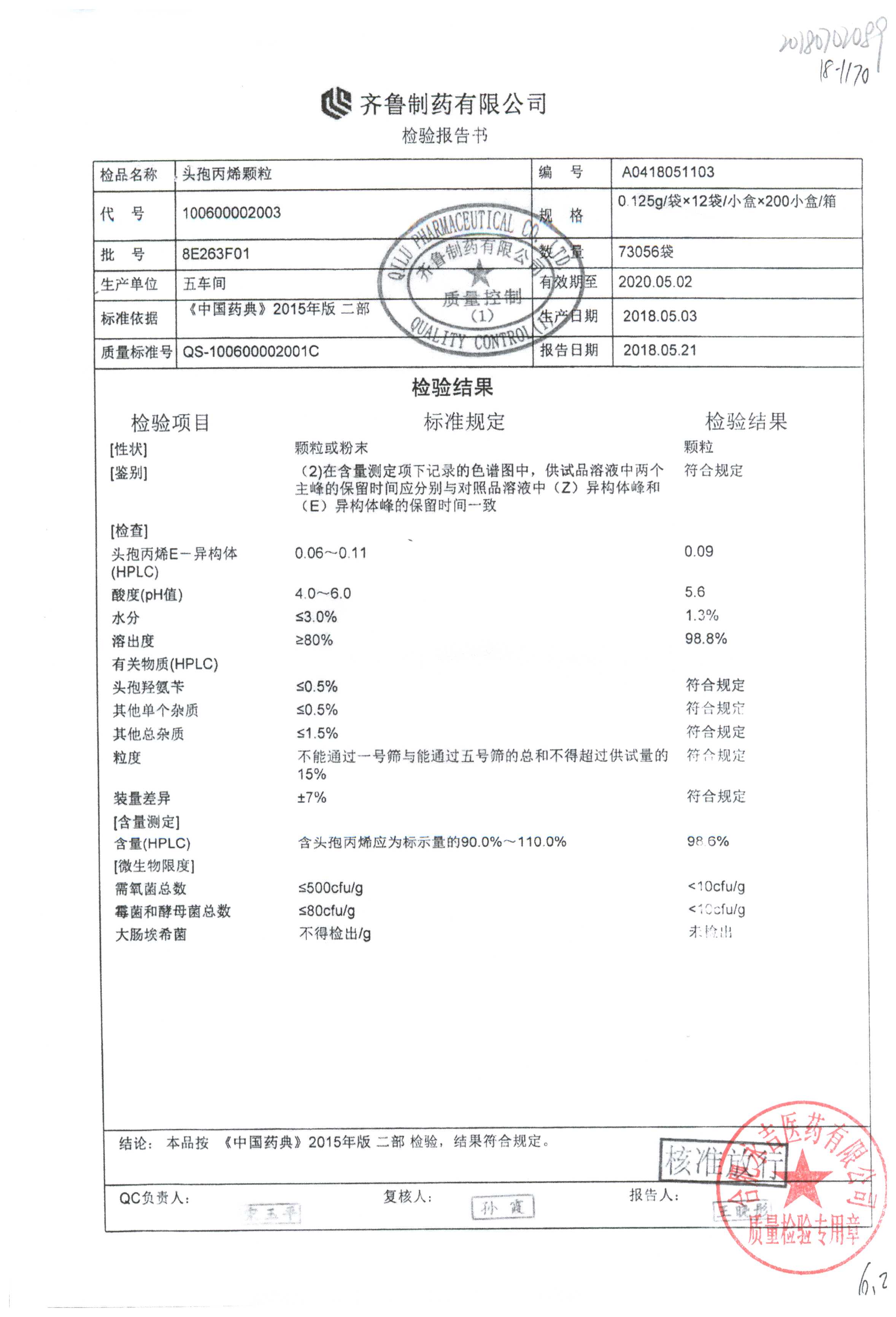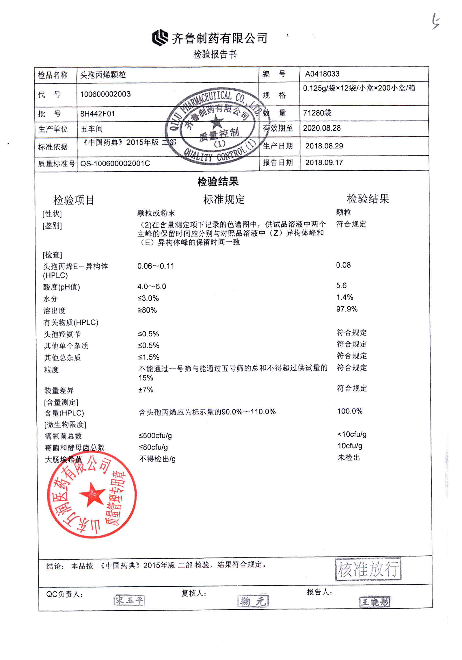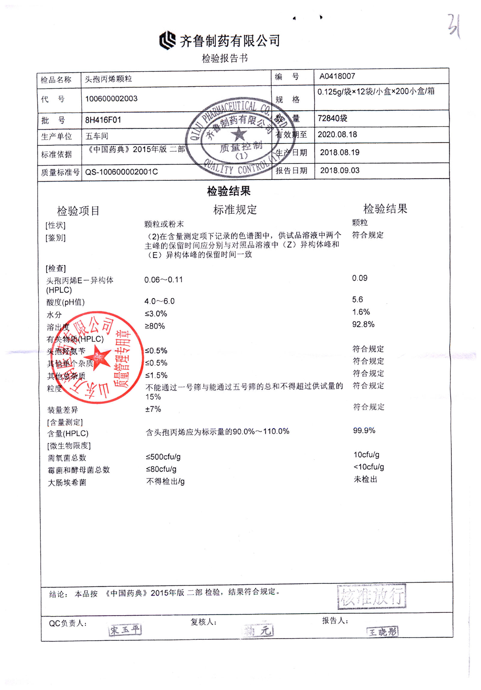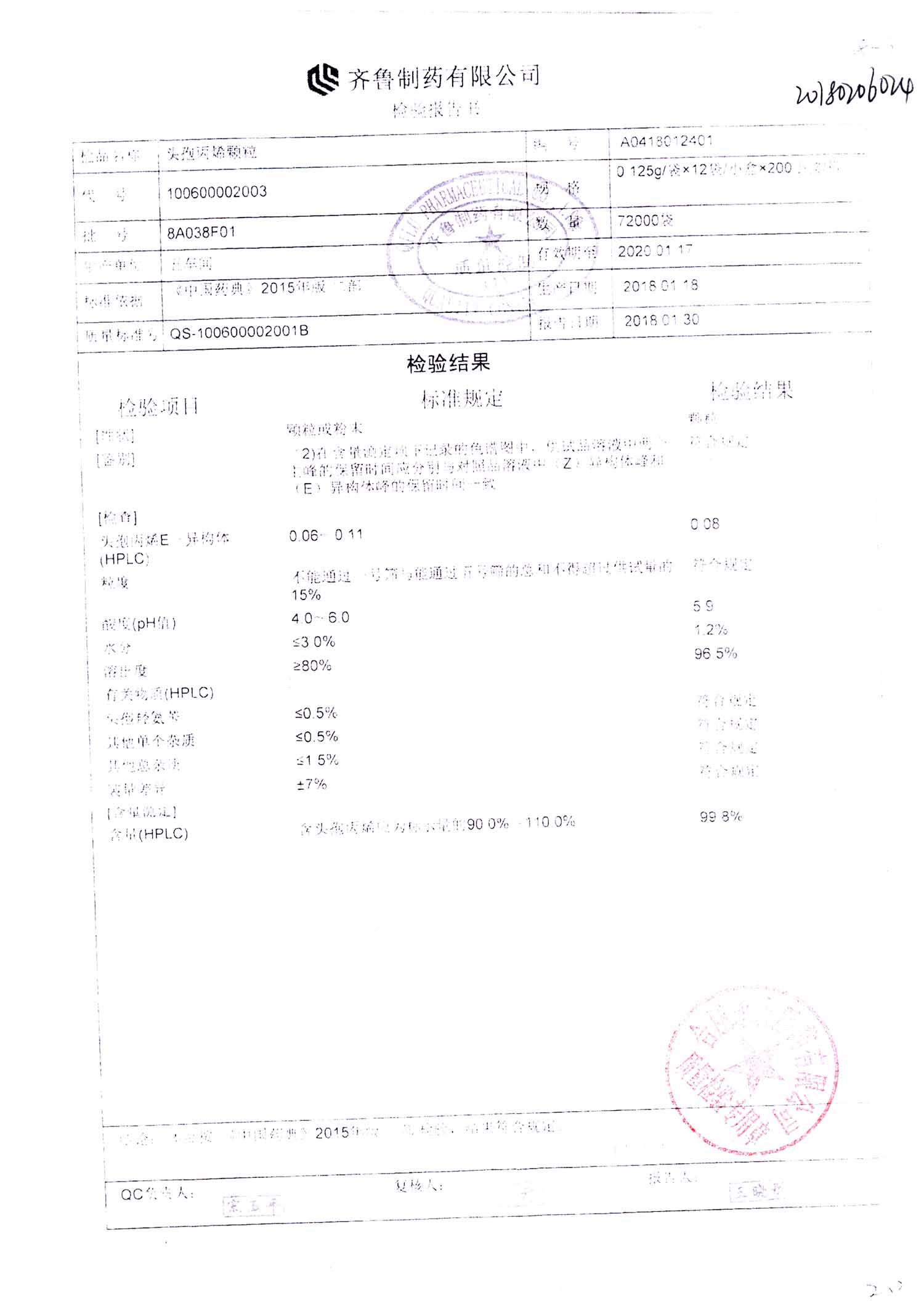 | 頭孢丙烯顆粒 | 0.125g*12袋 | 8H420F01 | 查看詳情 |