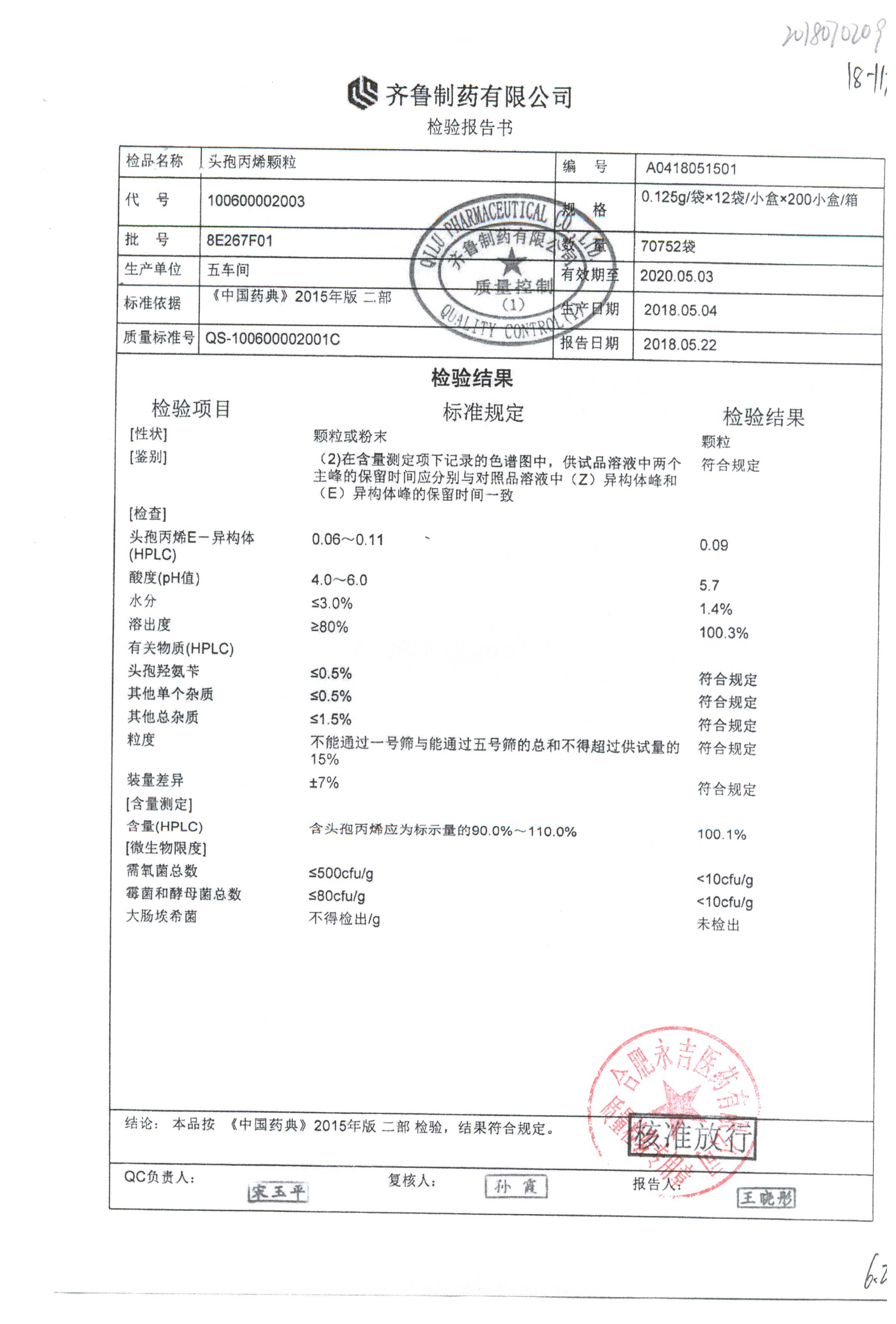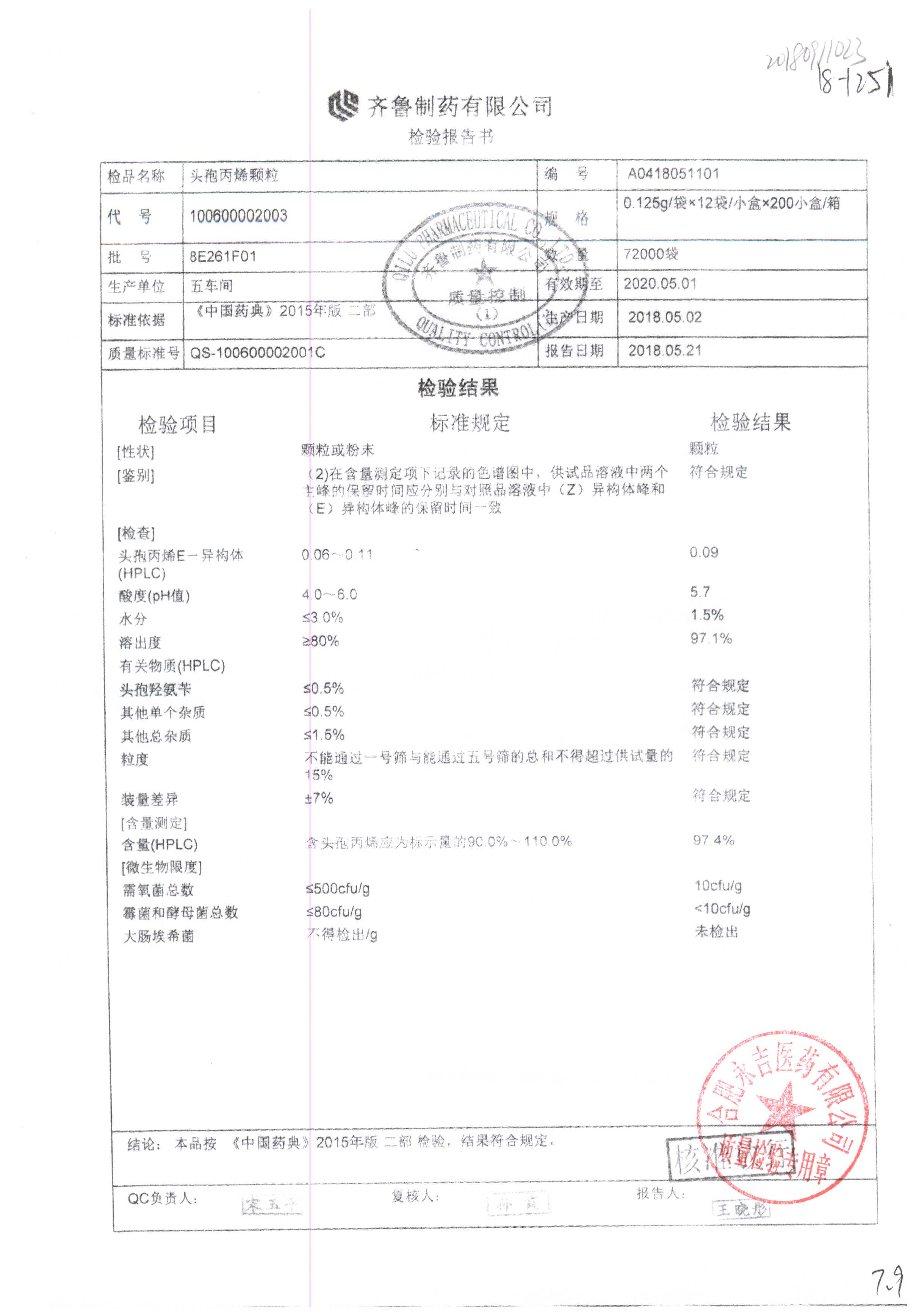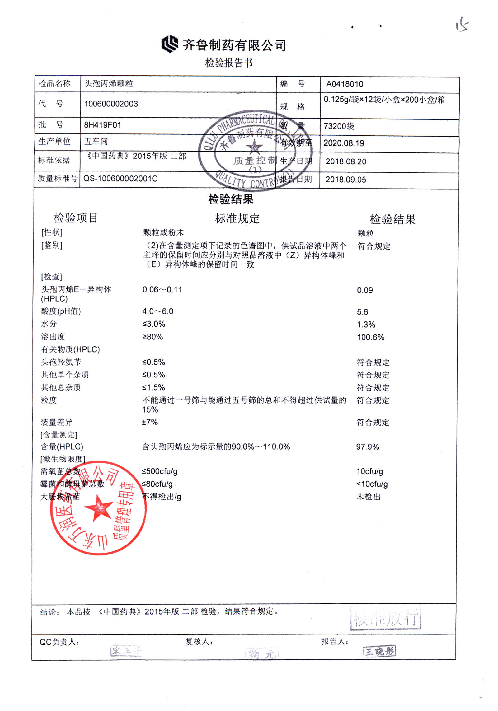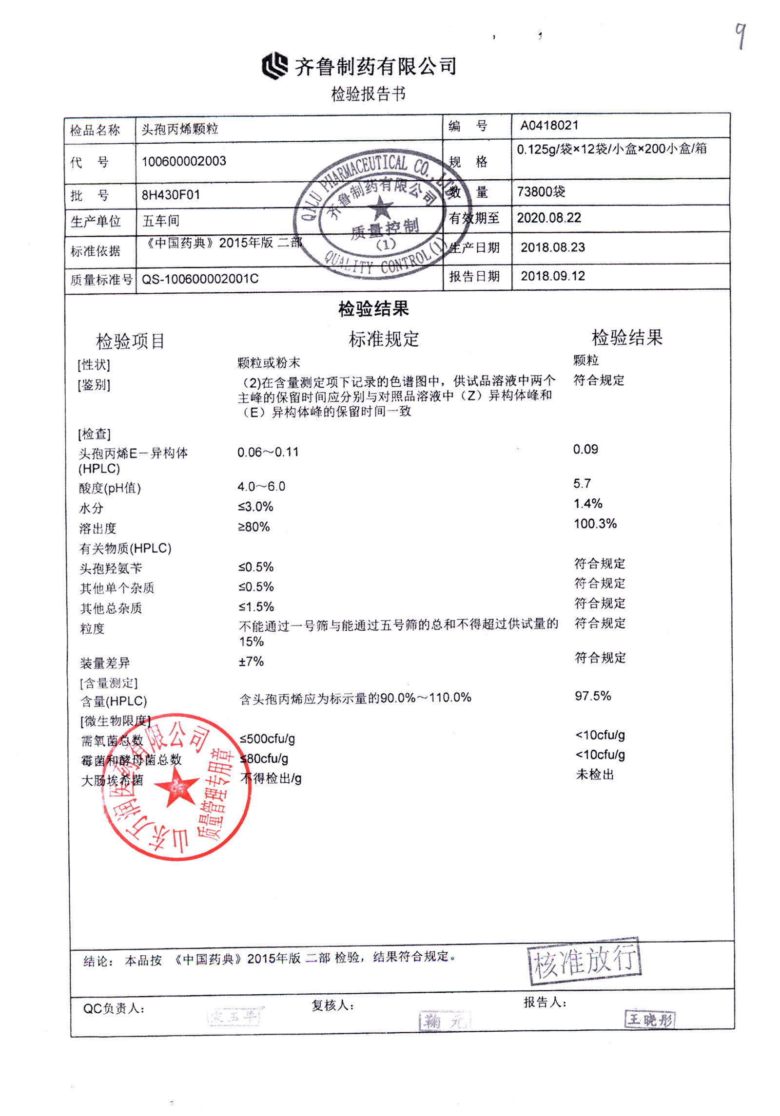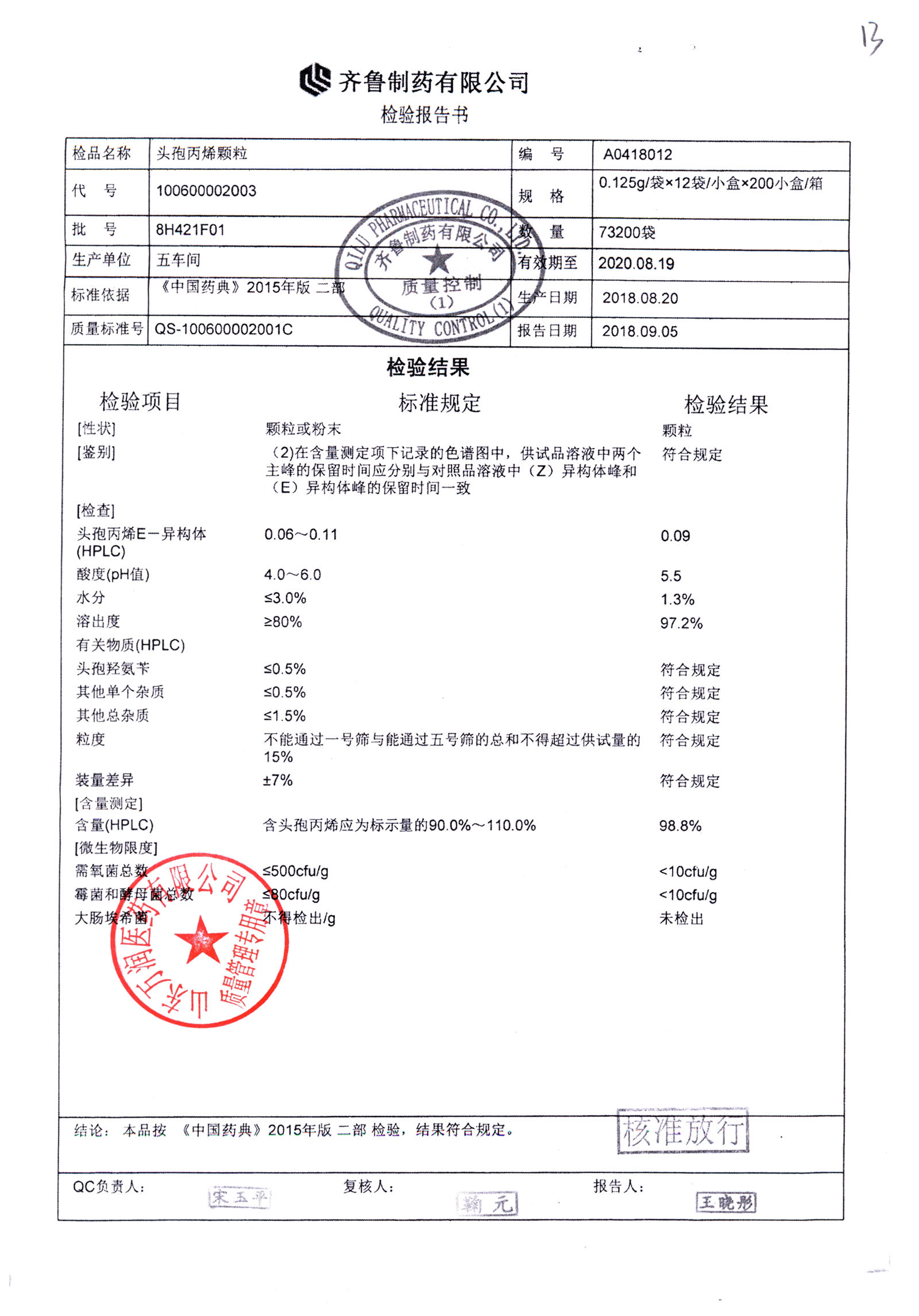 | 頭孢丙烯顆粒 | 0.125g*12袋 | 8H420F01 | 查看詳情 |