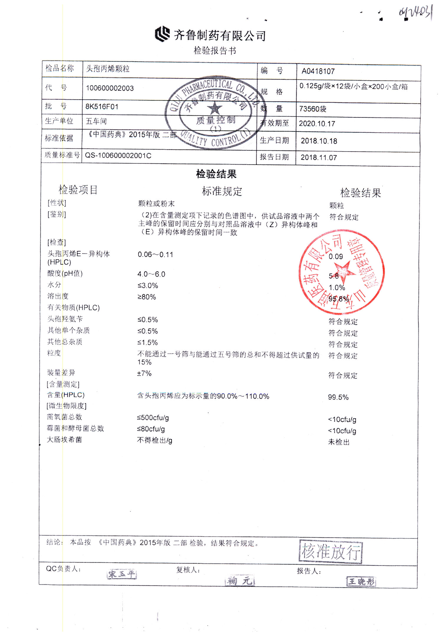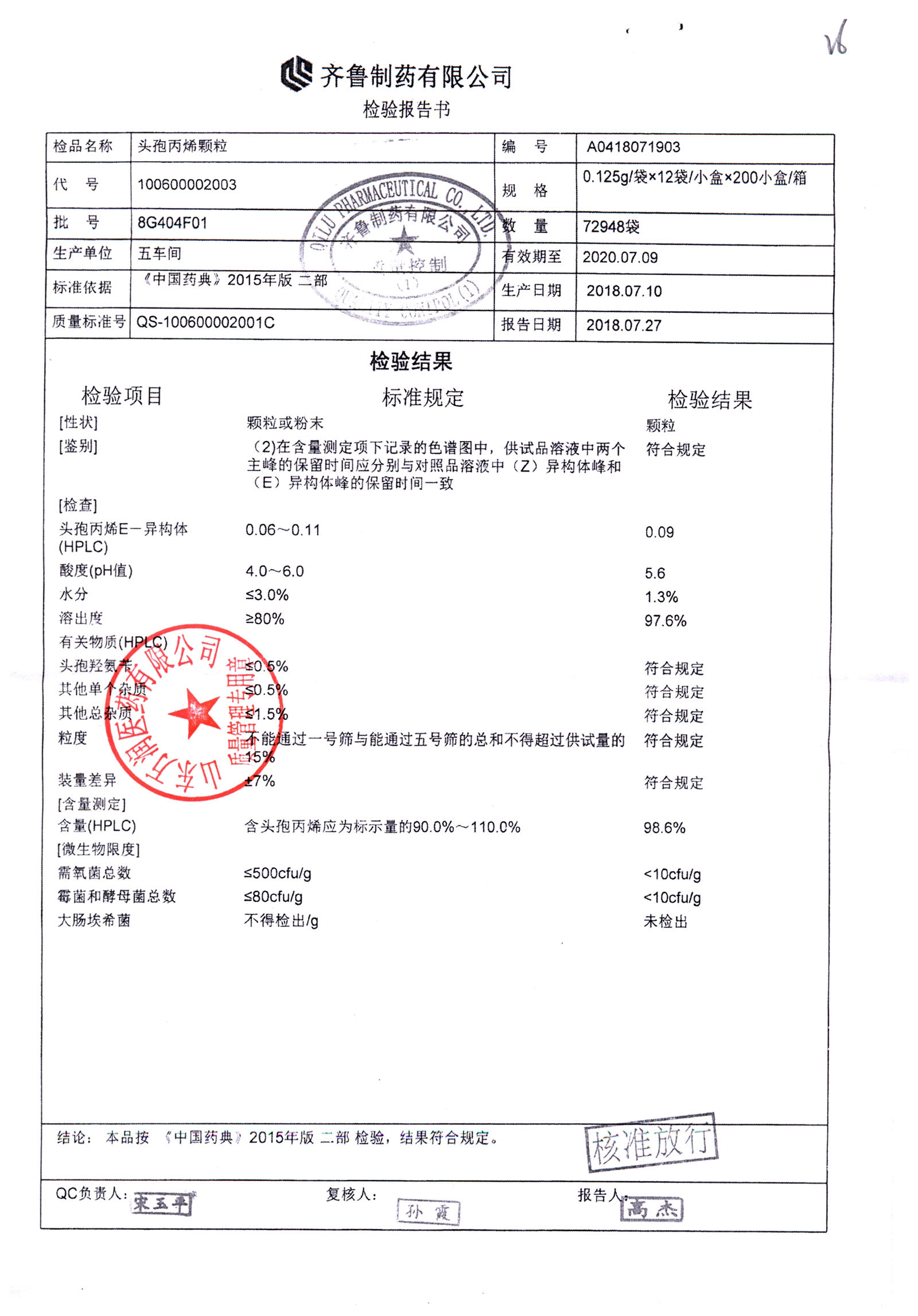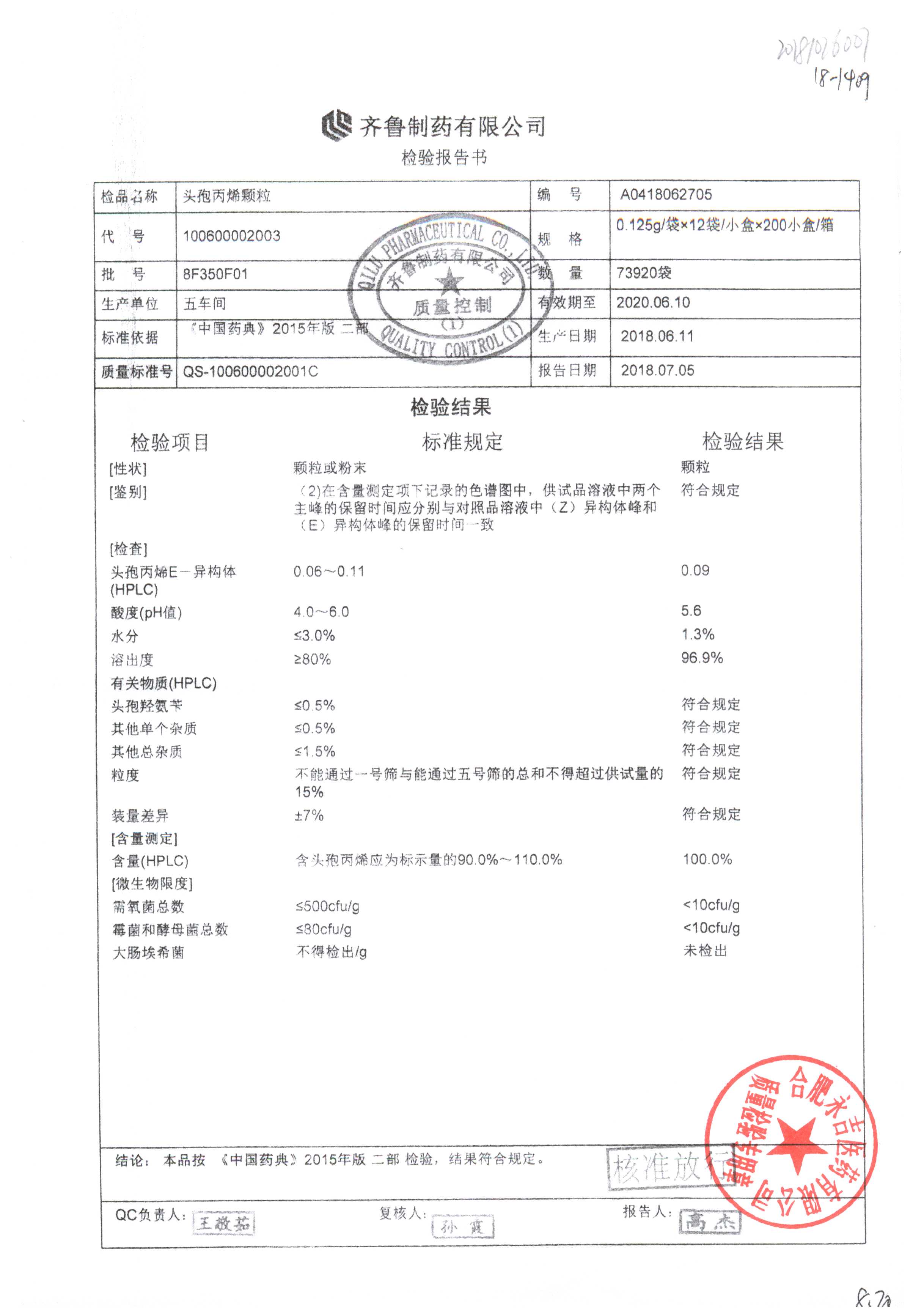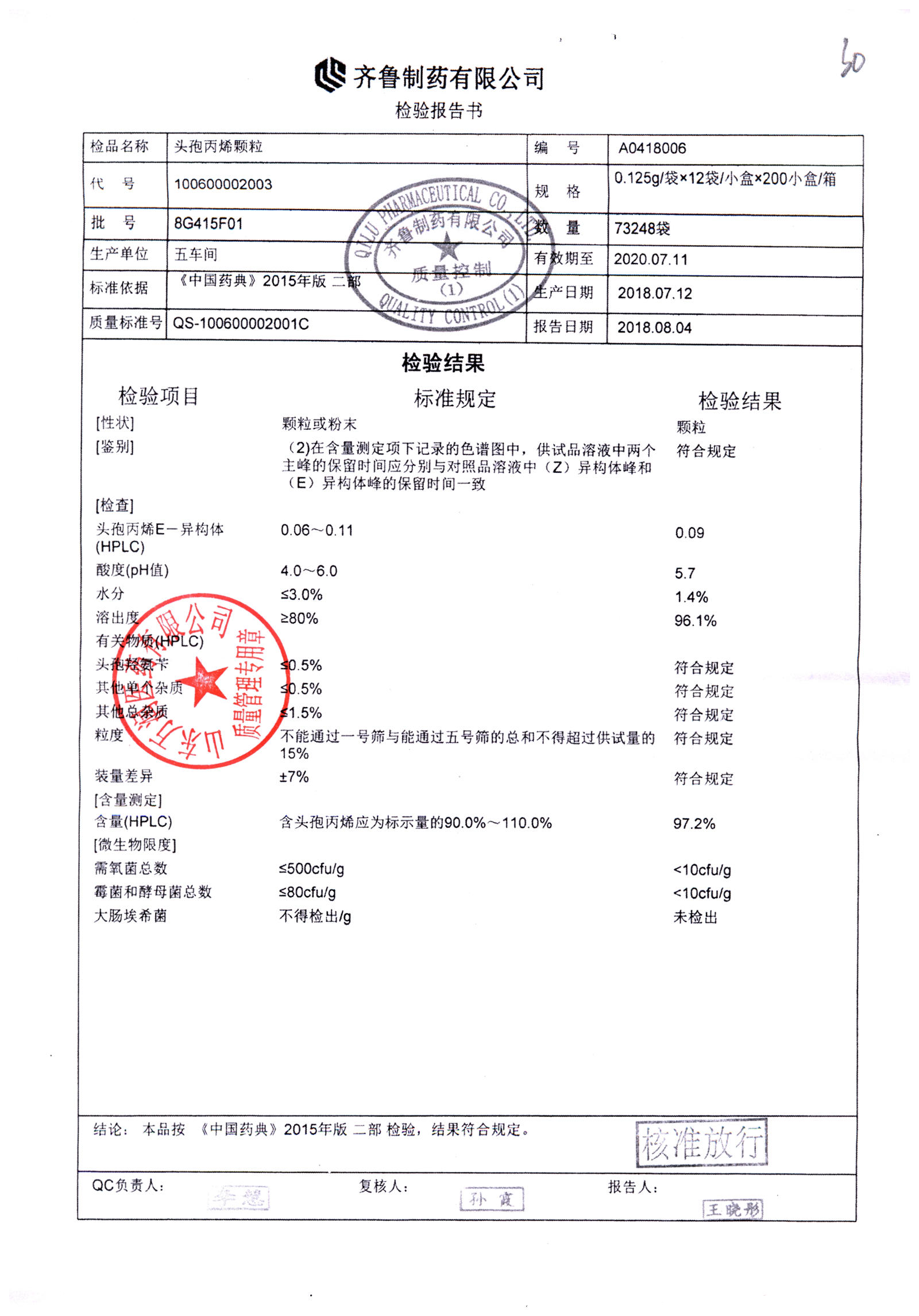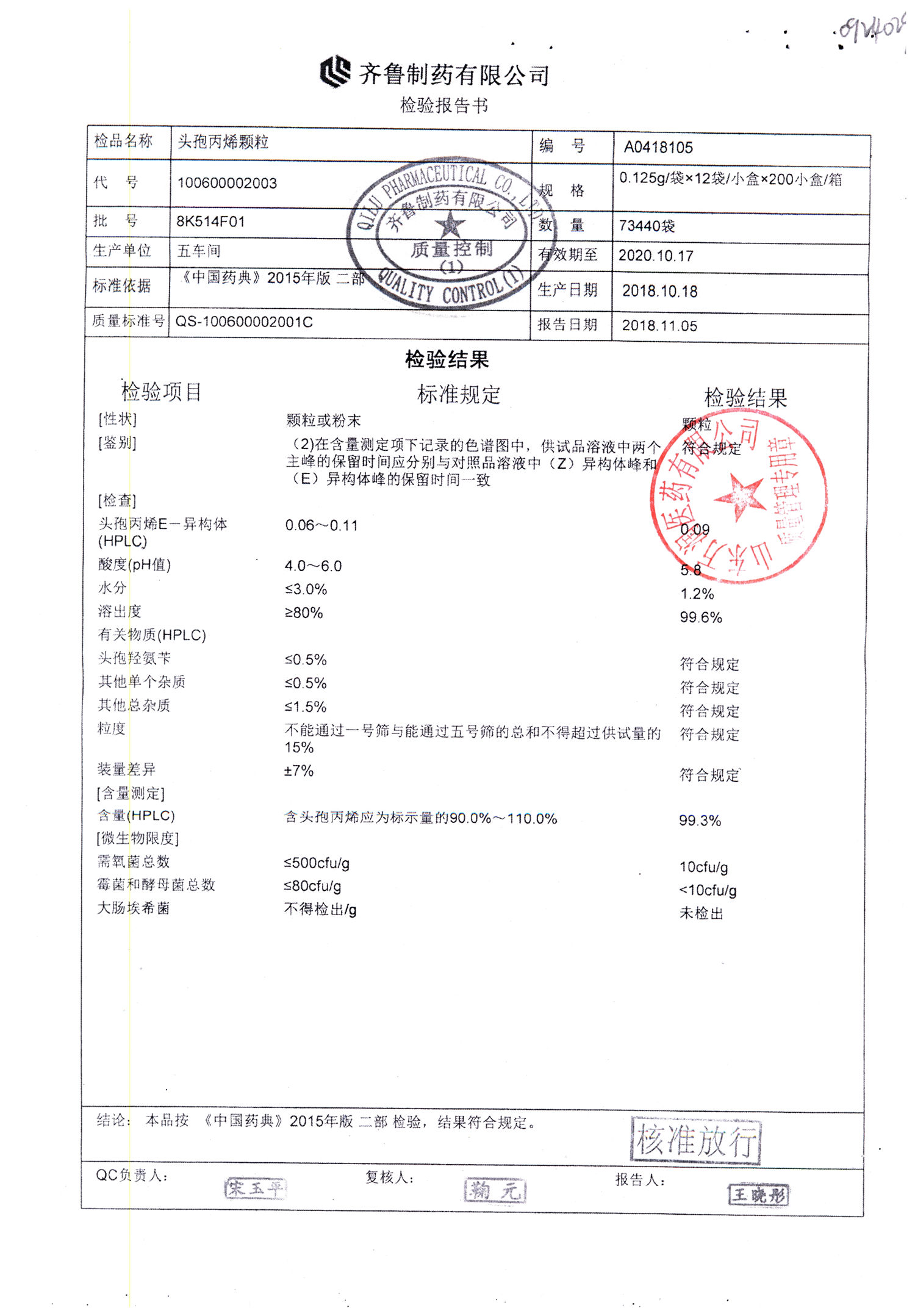 | 頭孢丙烯顆粒 | 0.125g*12袋 | 8H420F01 | 查看詳情 |