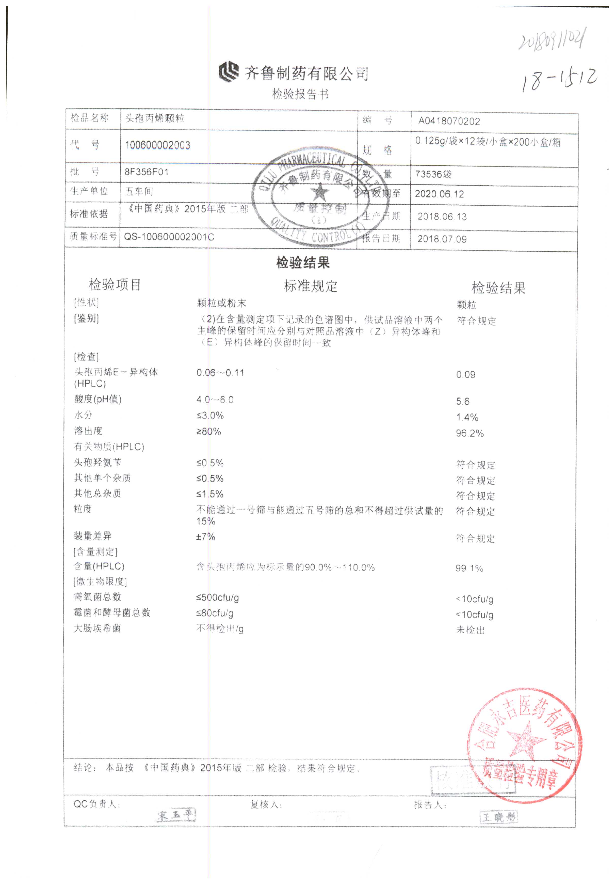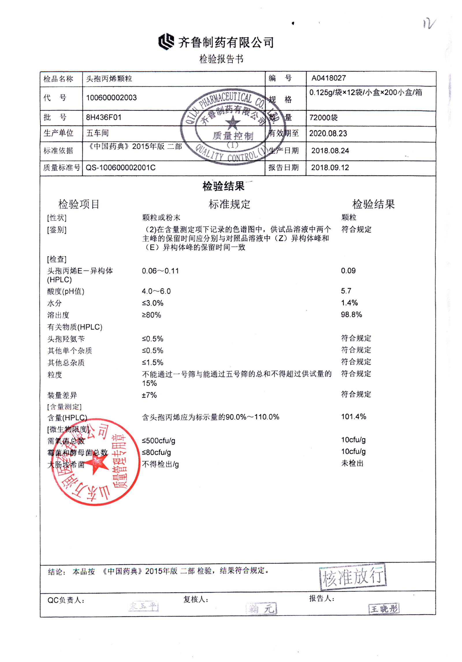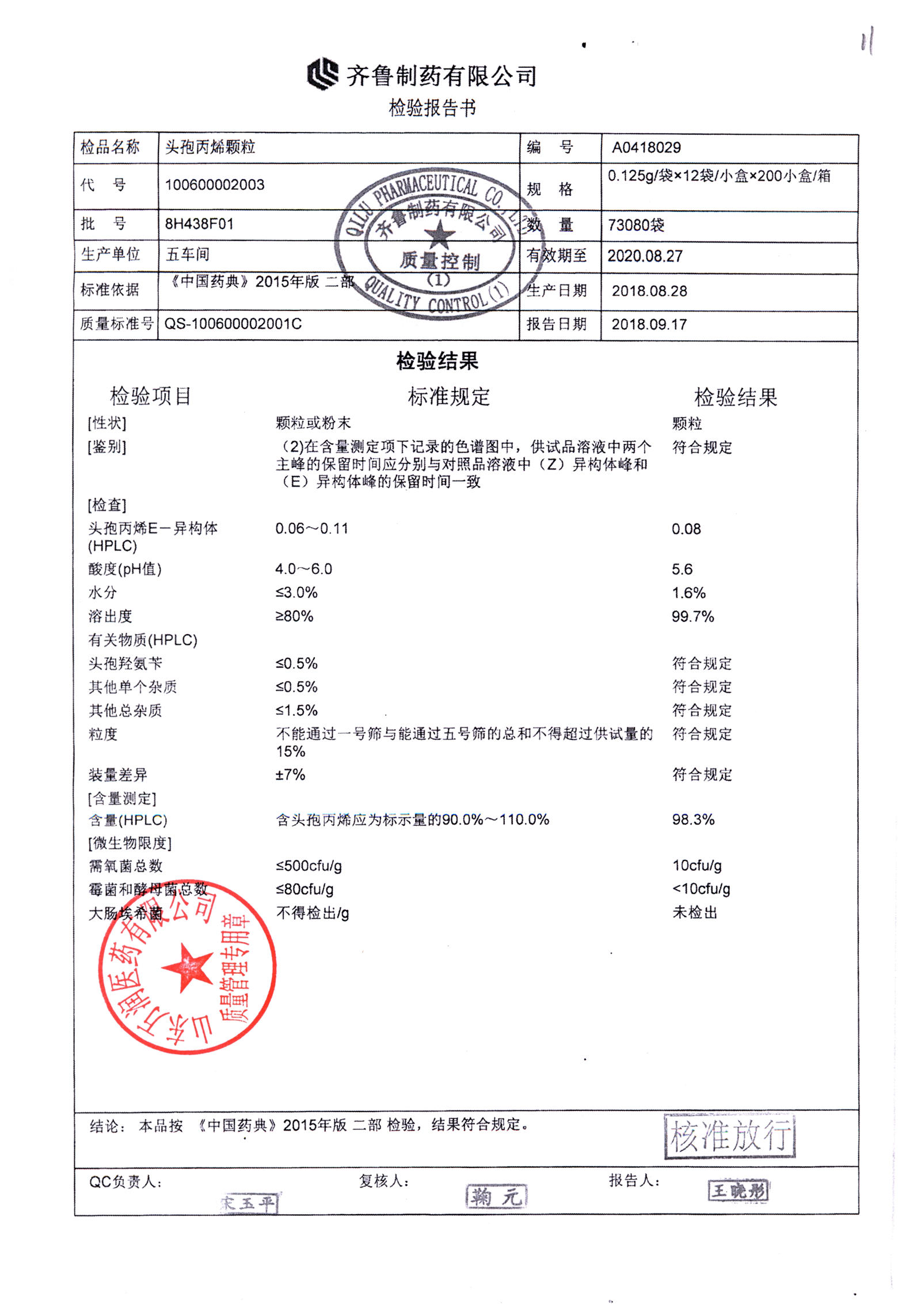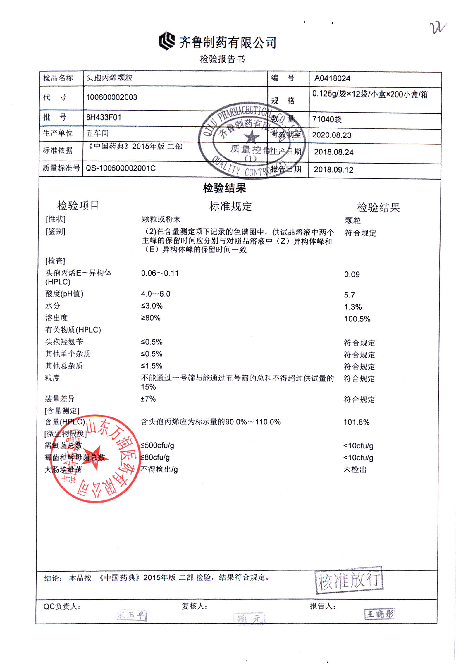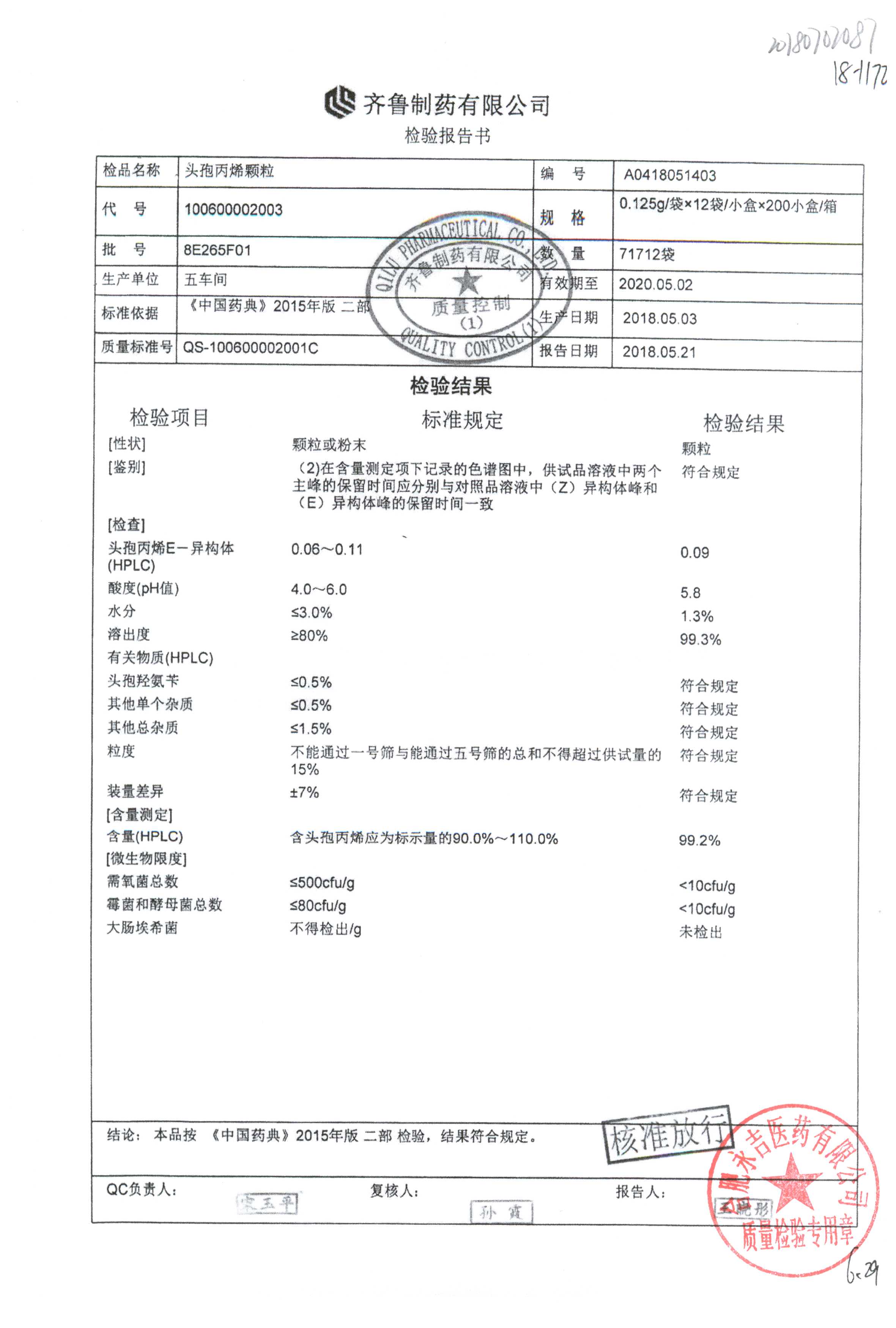 | 頭孢丙烯顆粒 | 0.125g*12袋 | 8H418F01 | 查看詳情 |