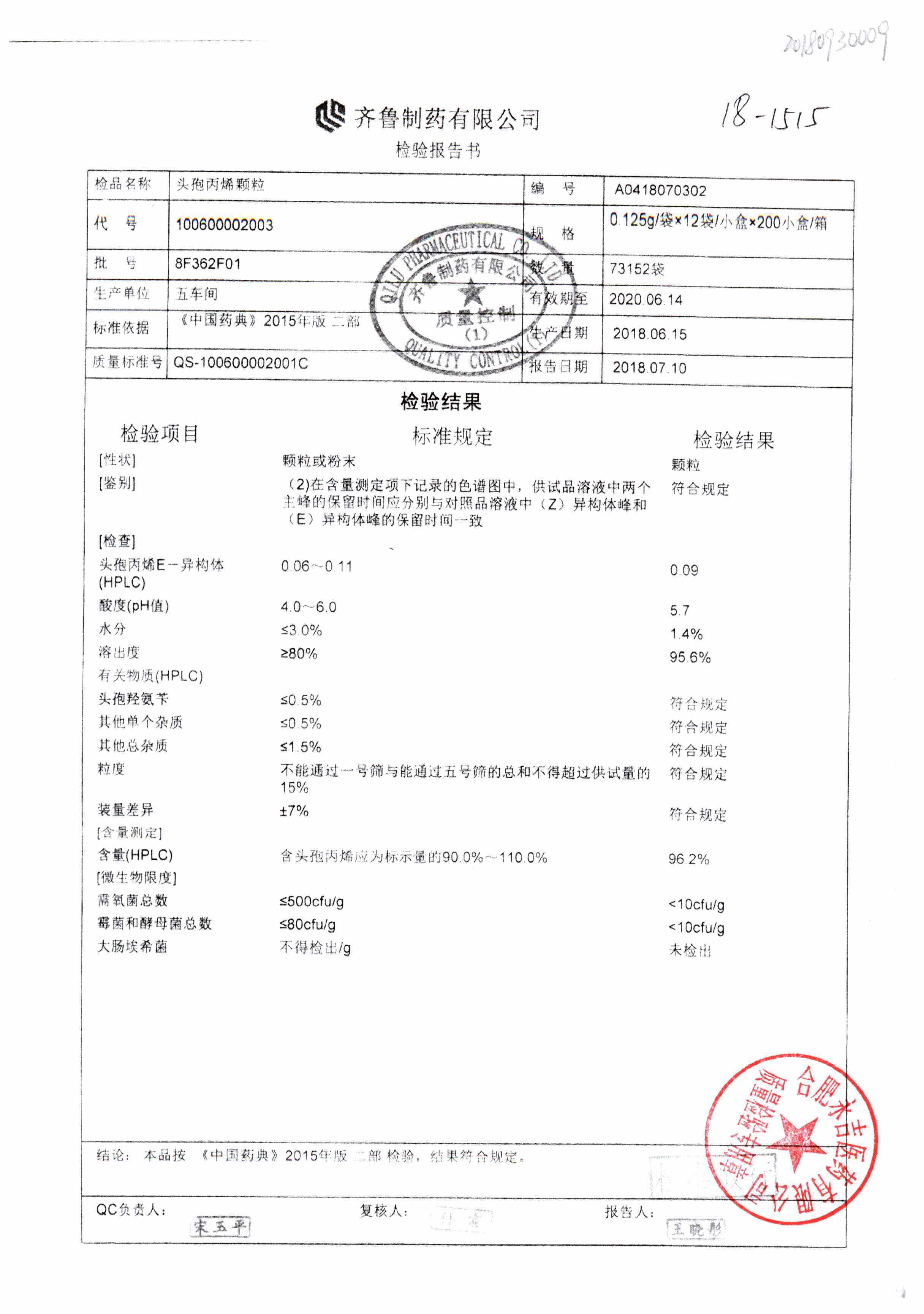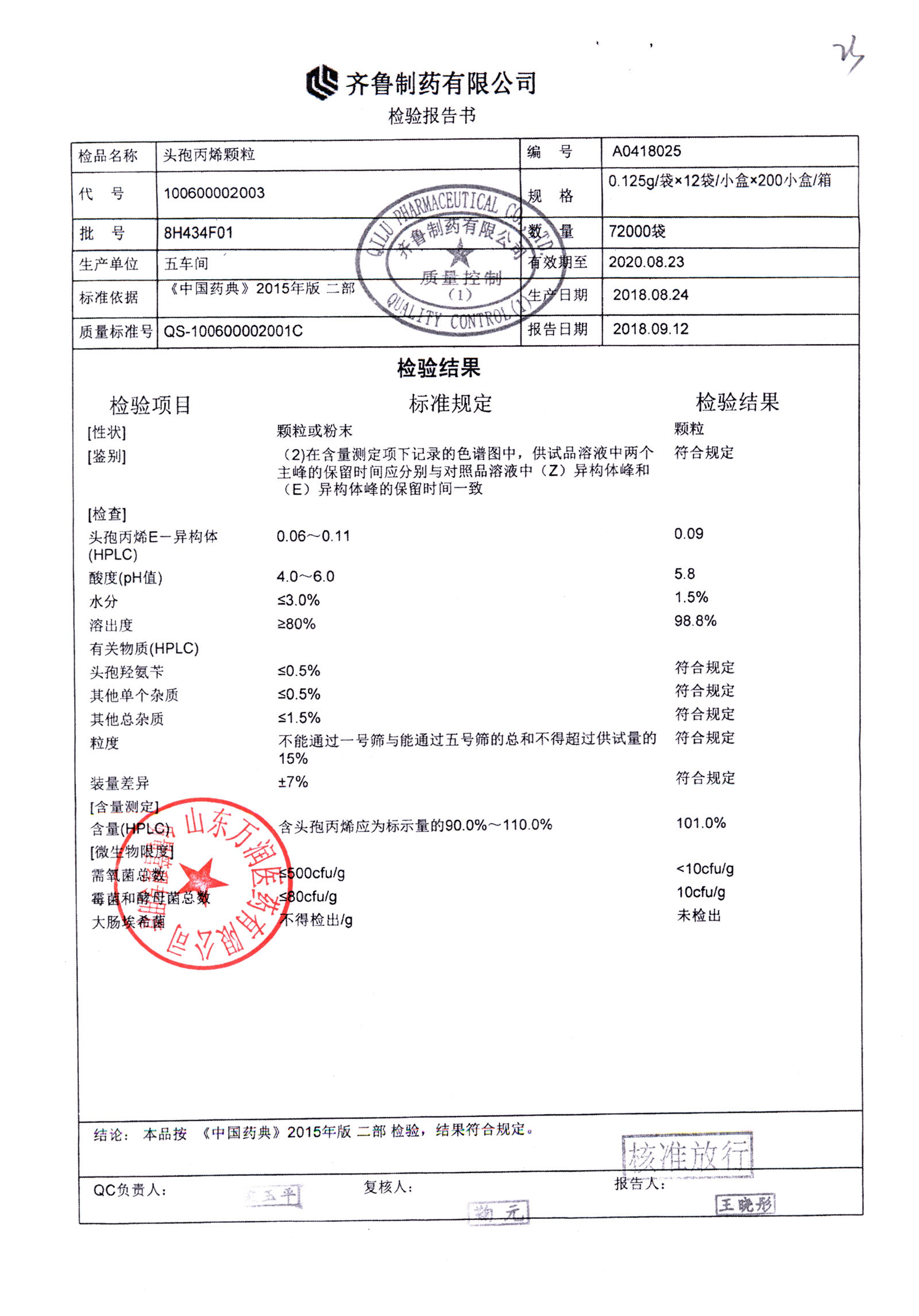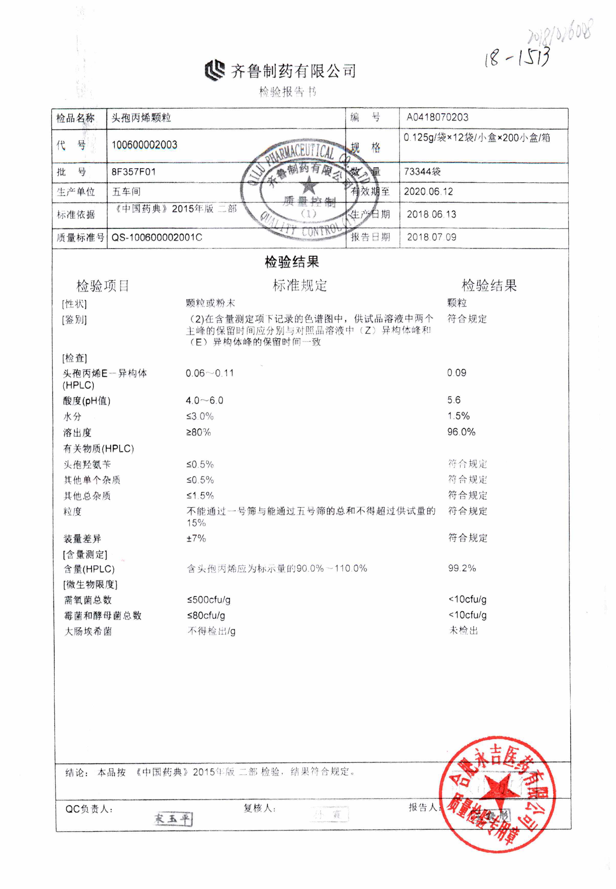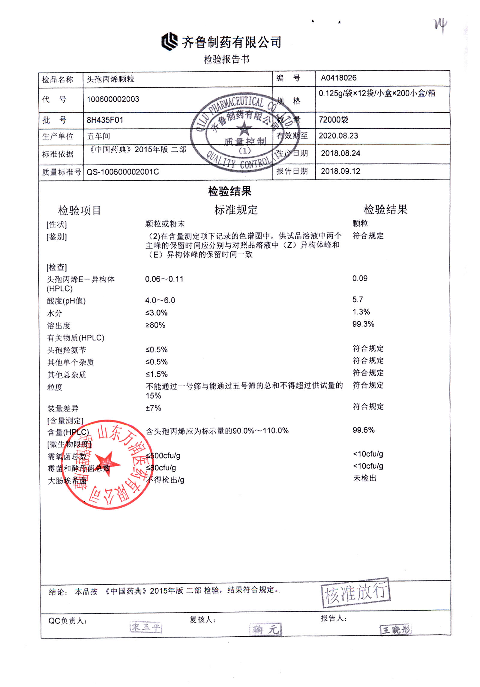 | 頭孢丙烯顆粒 | 0.125g*12袋 | 8H418F01 | 查看詳情 |
