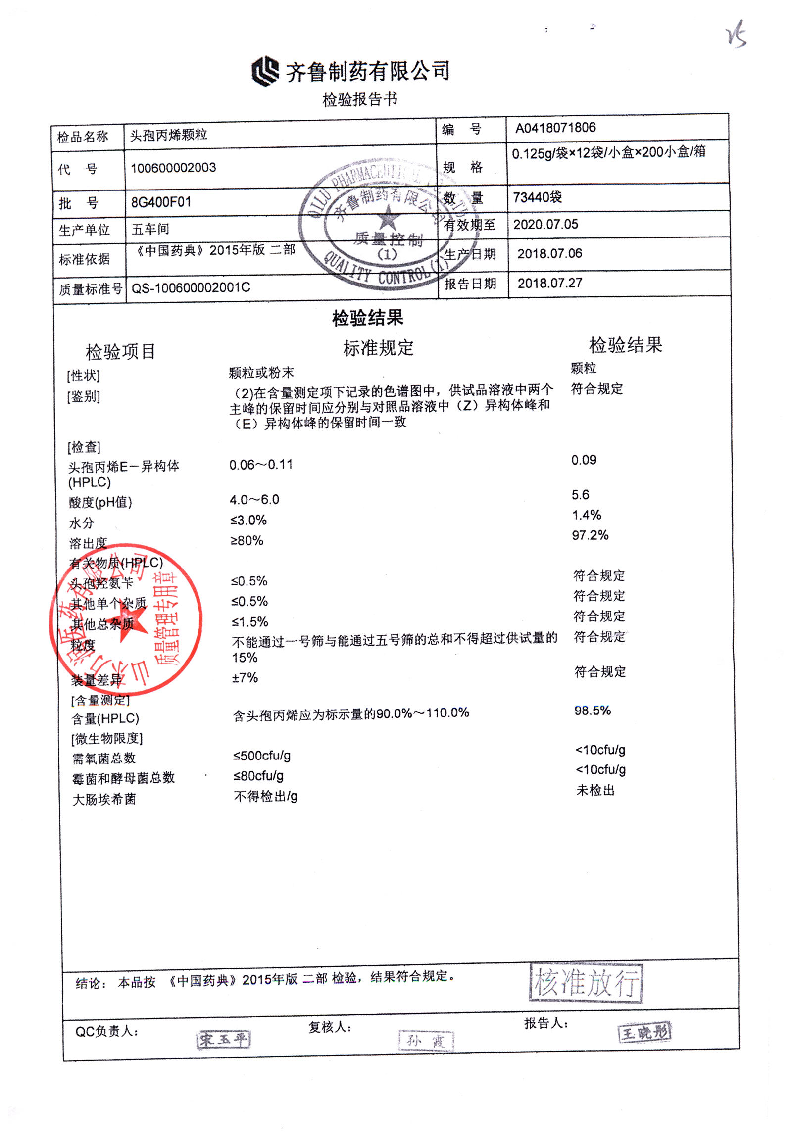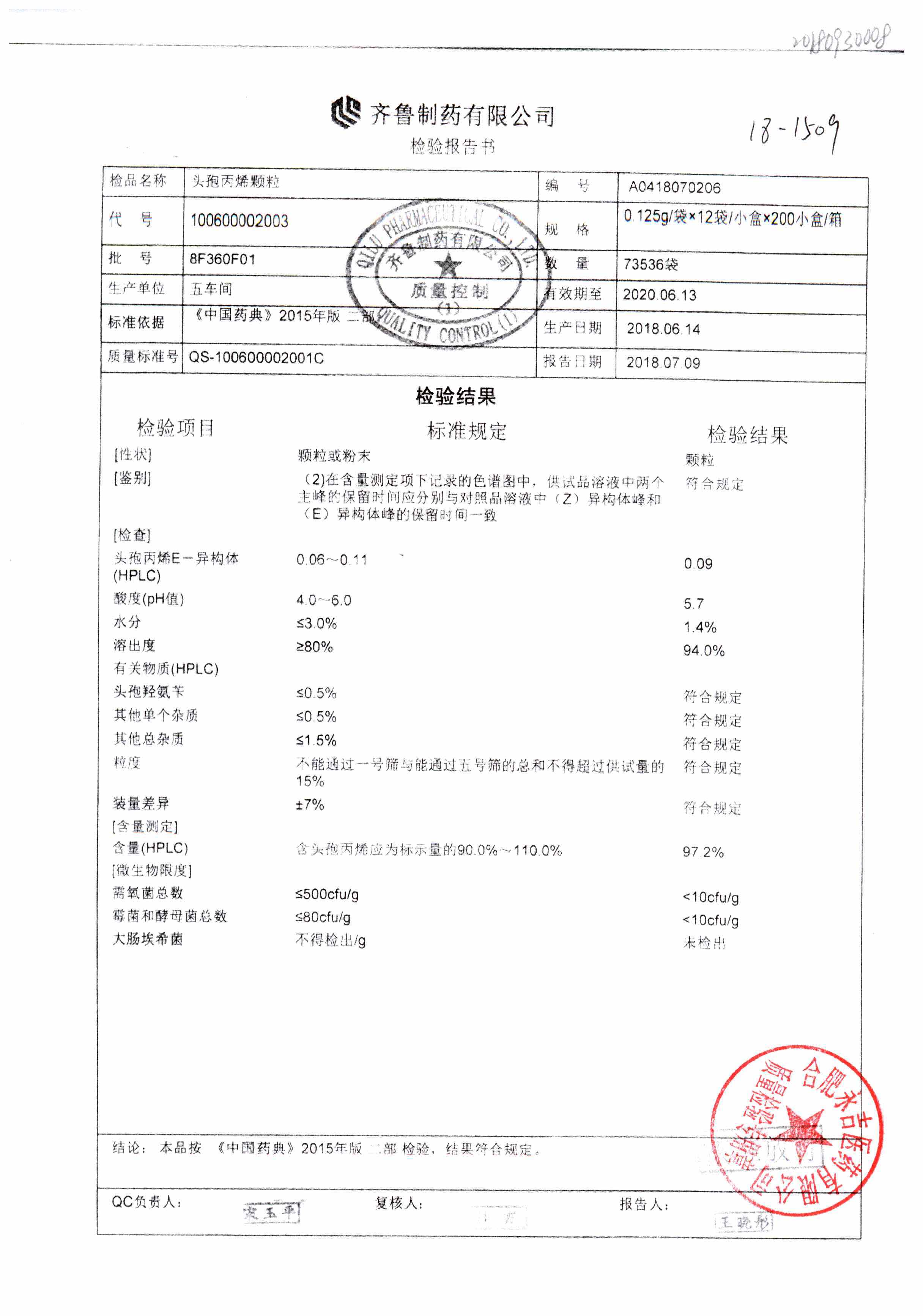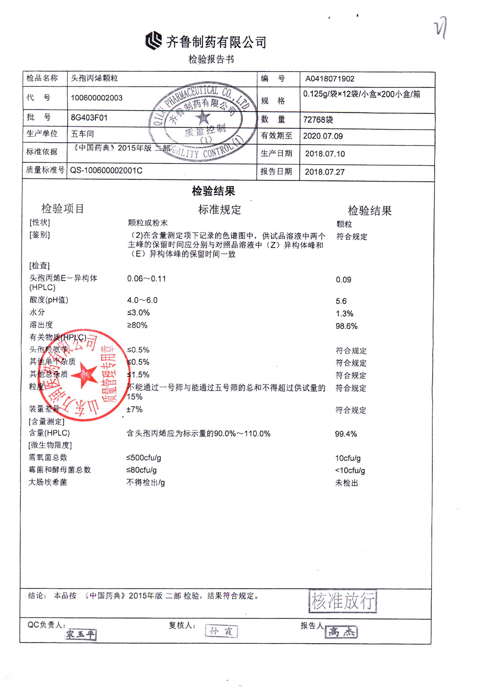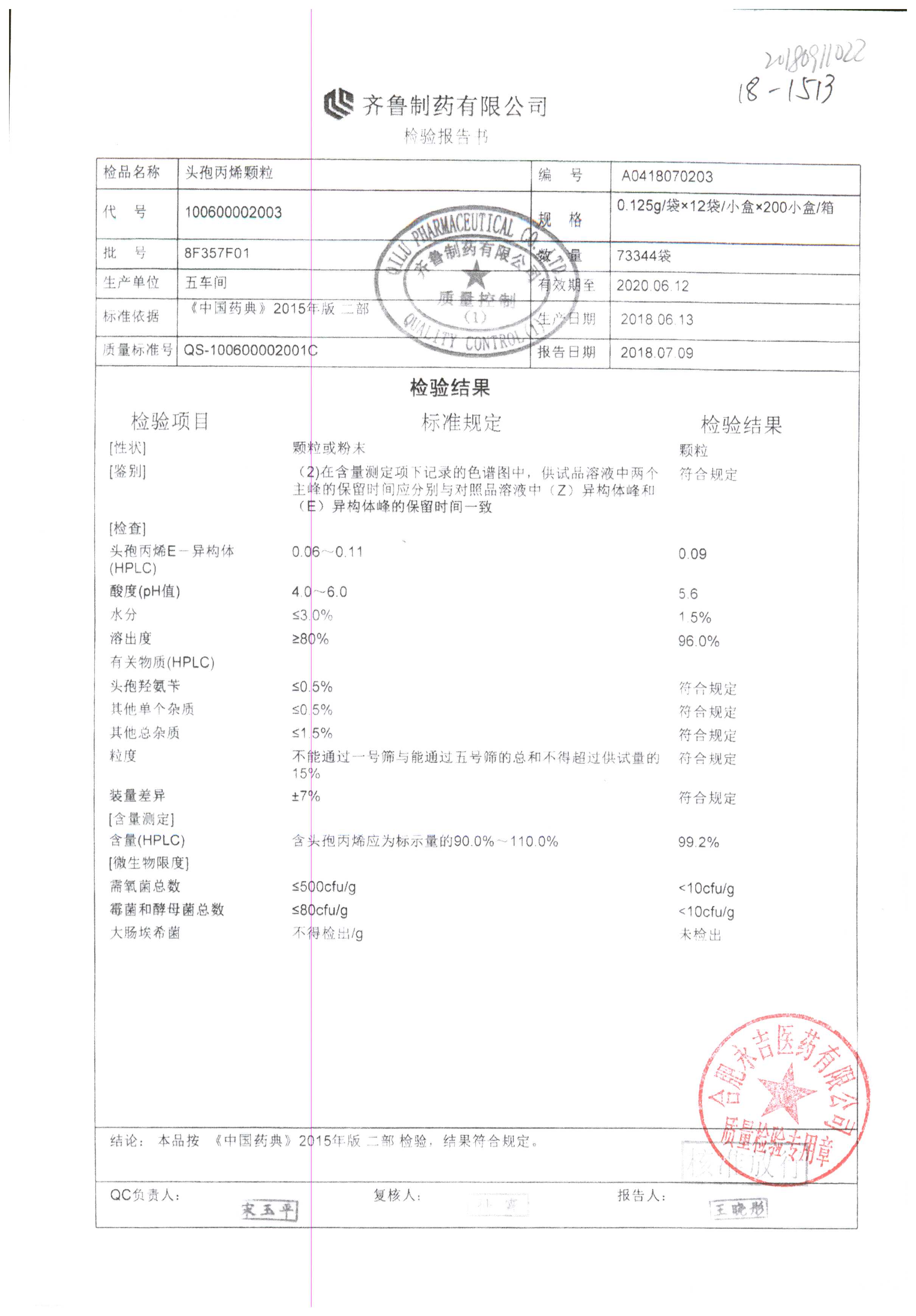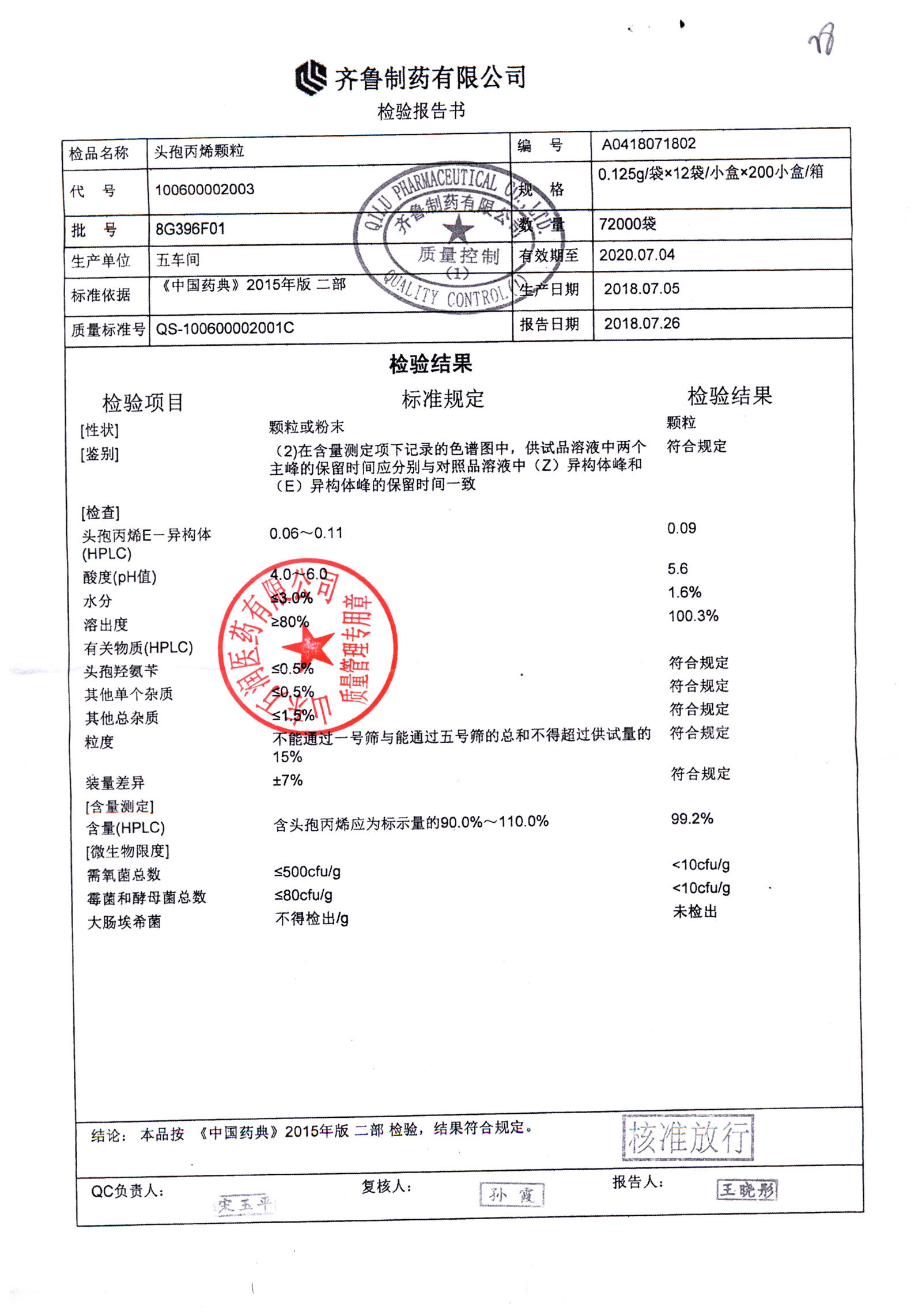 | 頭孢丙烯顆粒 | 0.125g*12袋 | 8H418F01 | 查看詳情 |
