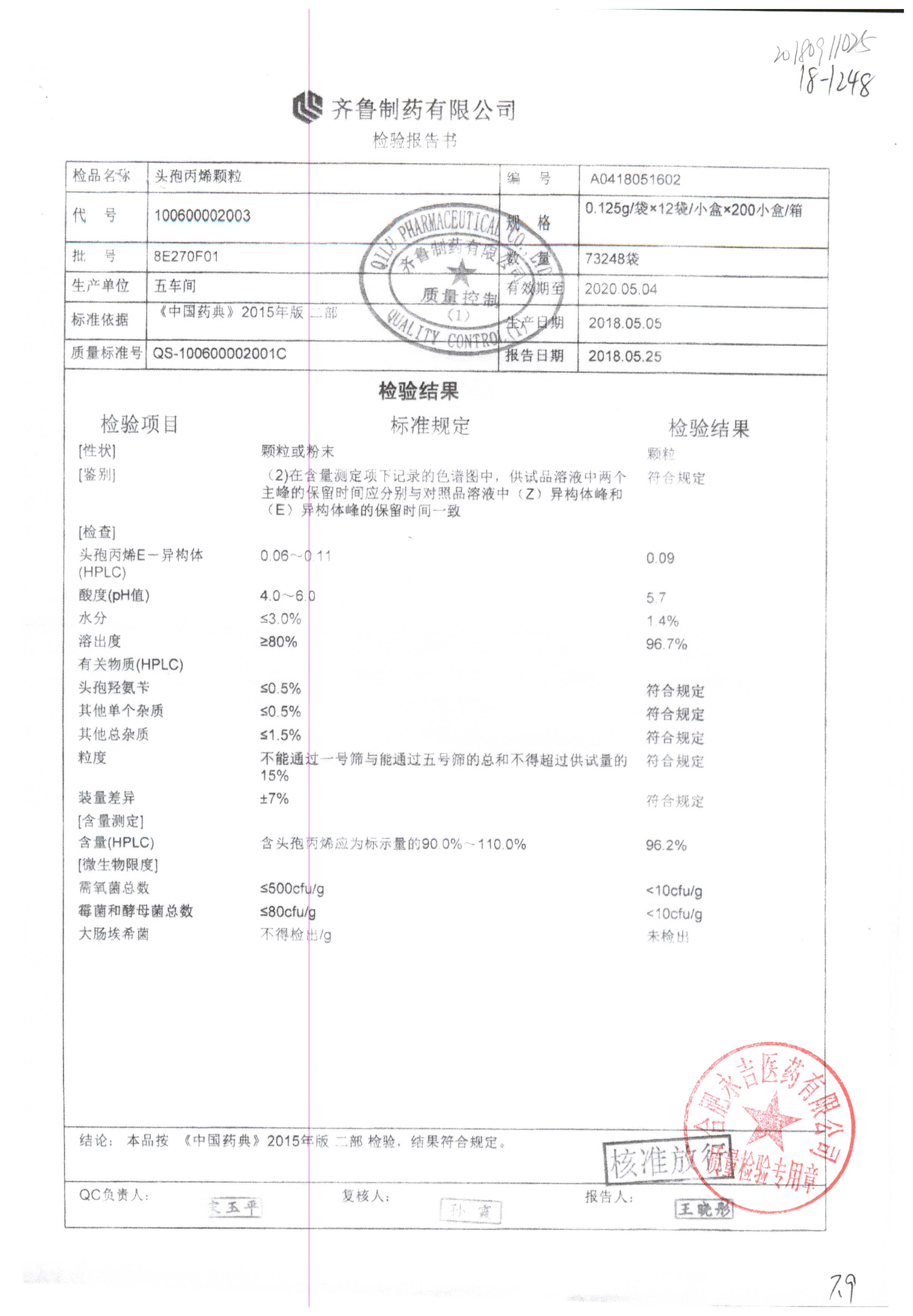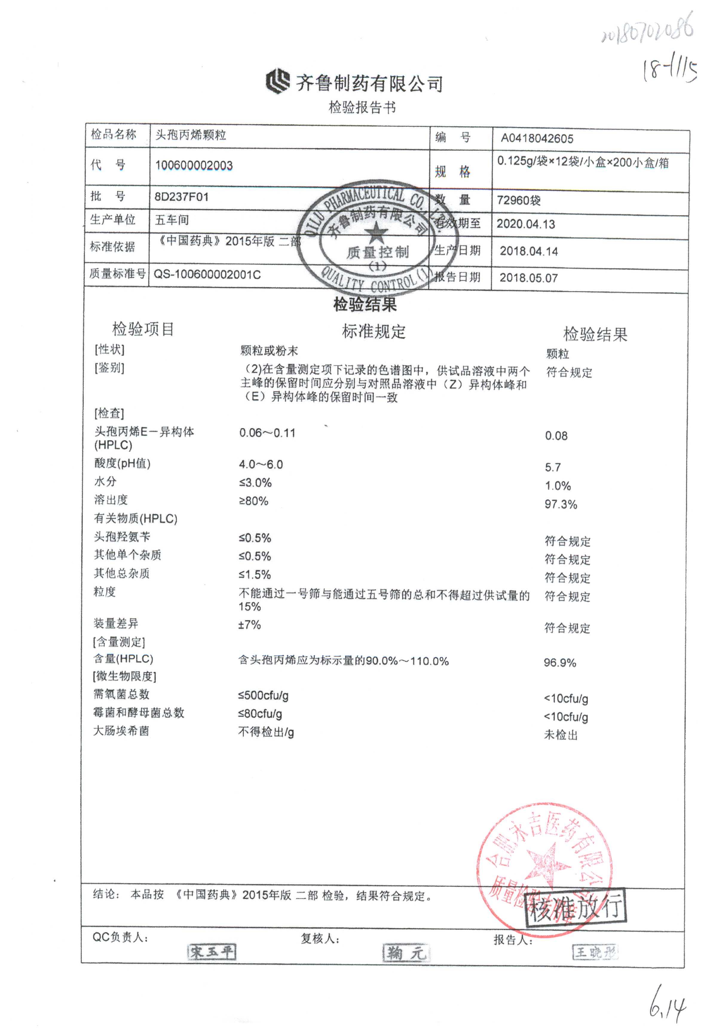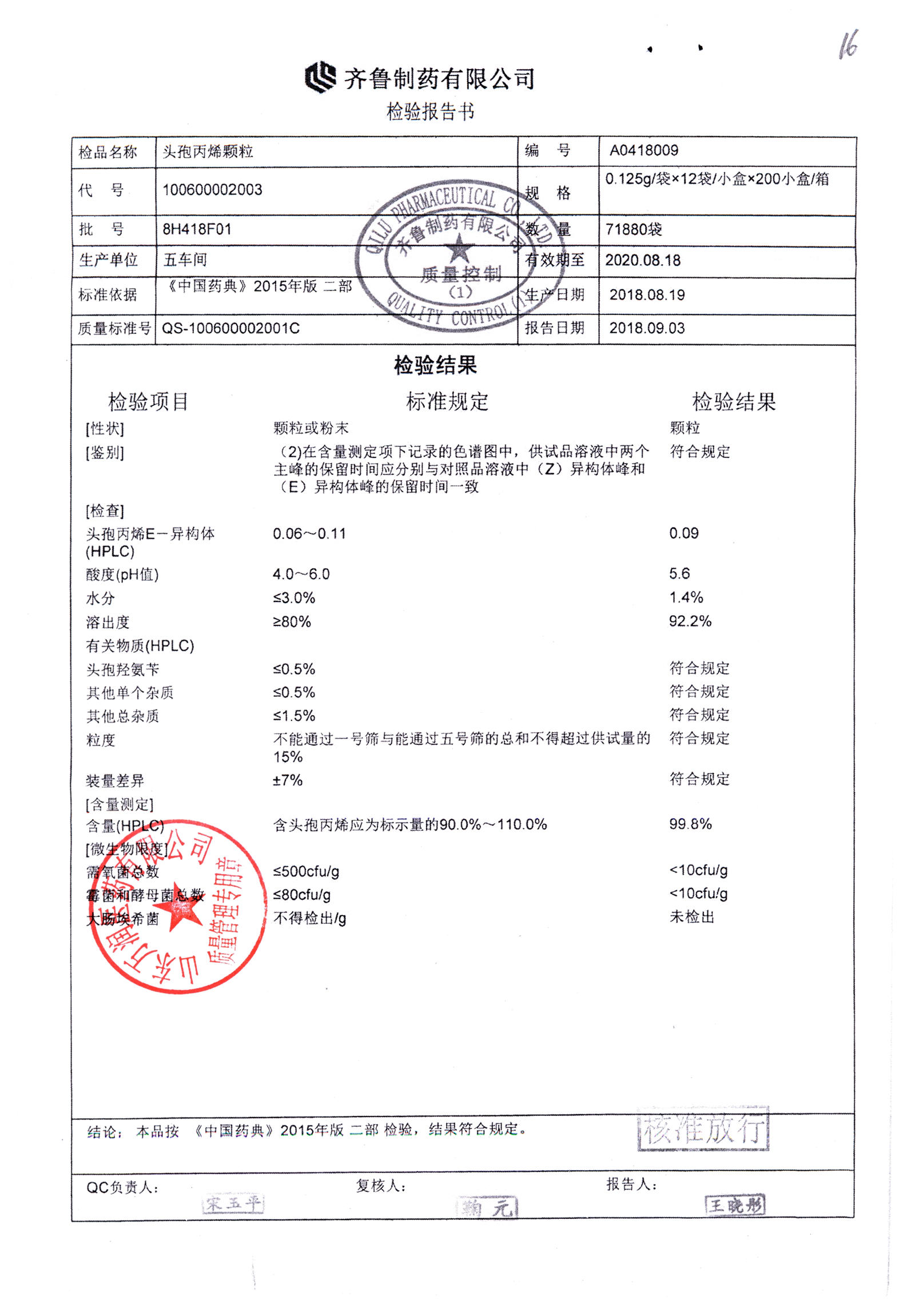 | 名稱 | 規格 | 批號 | 藥檢報告 |