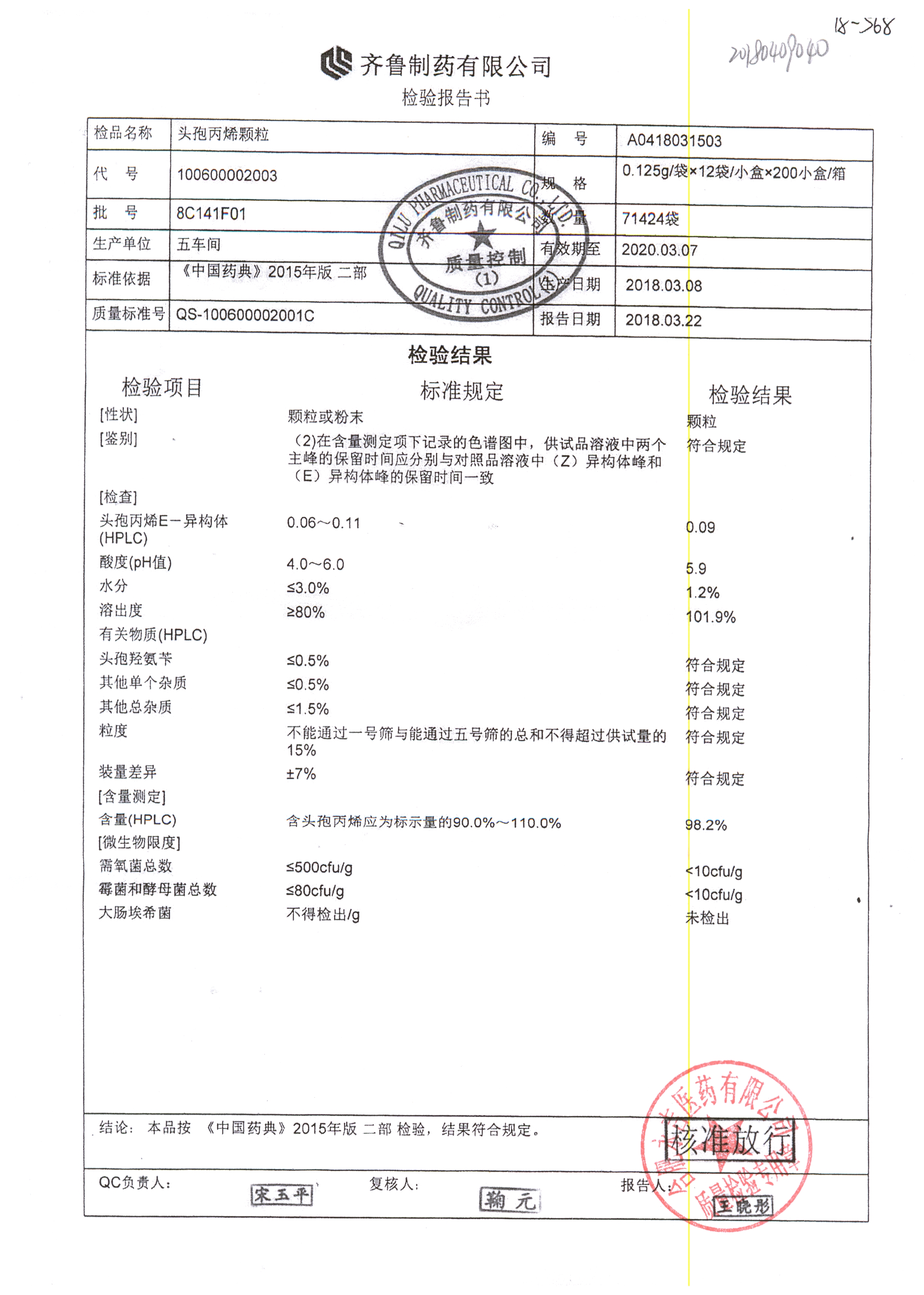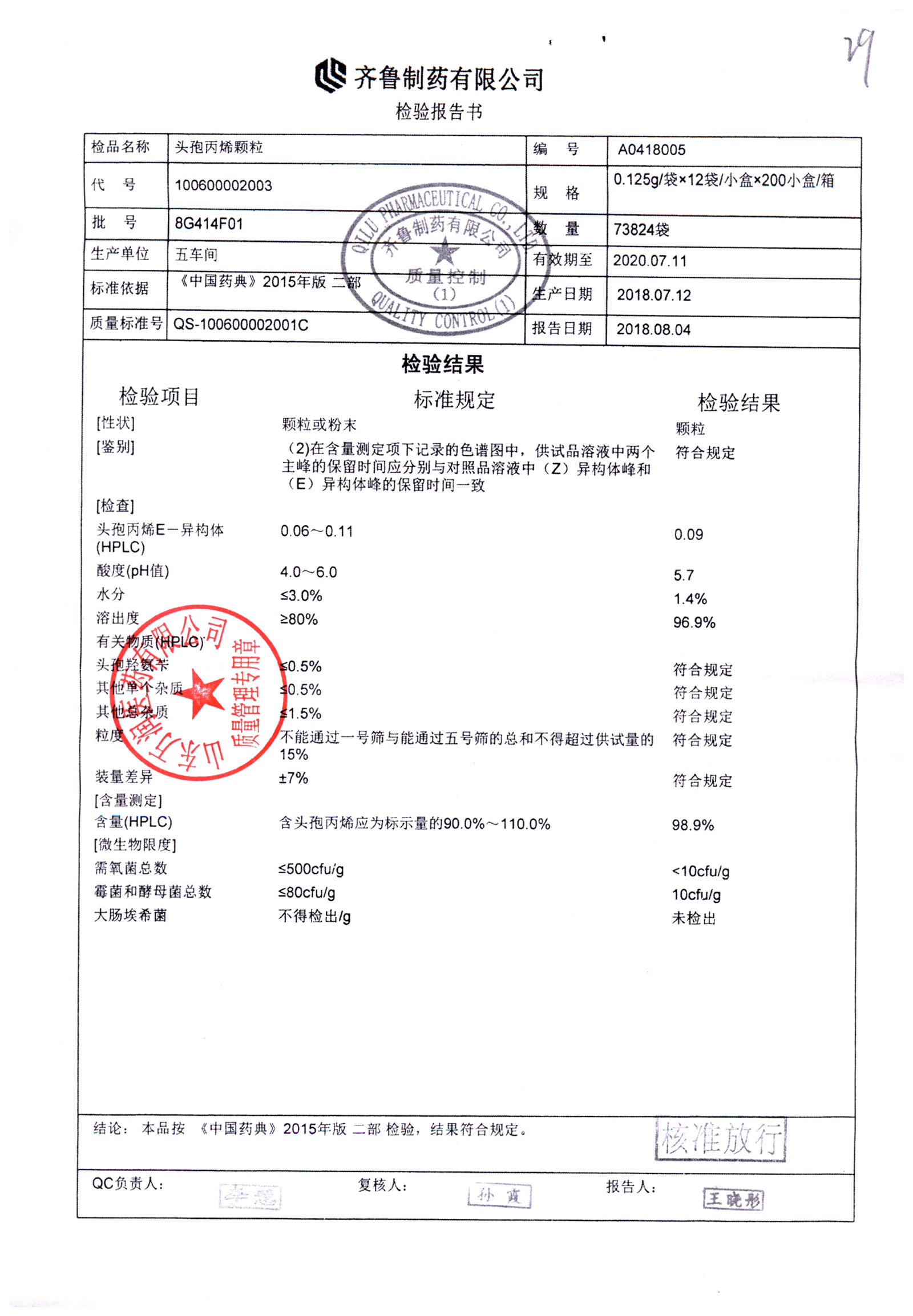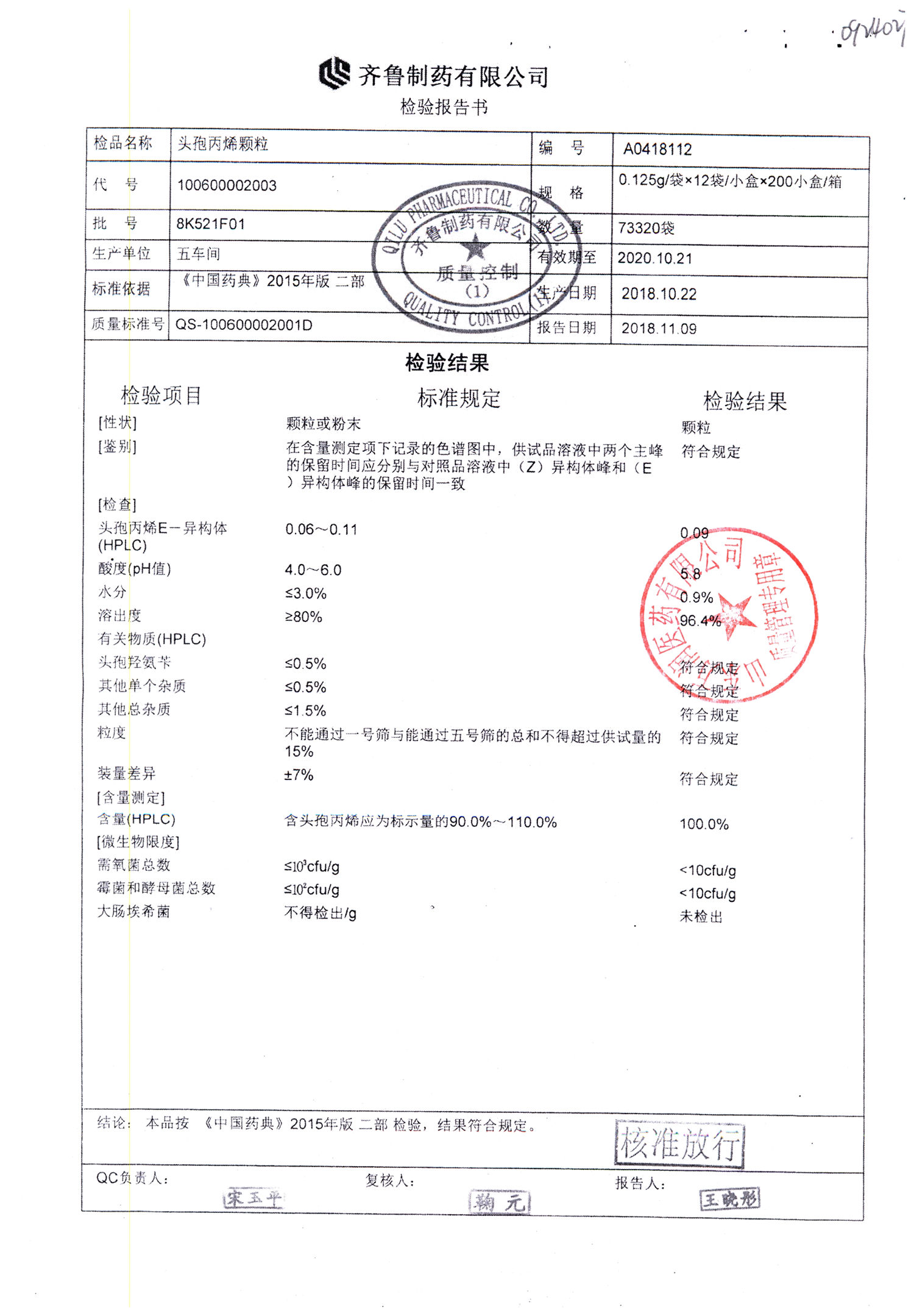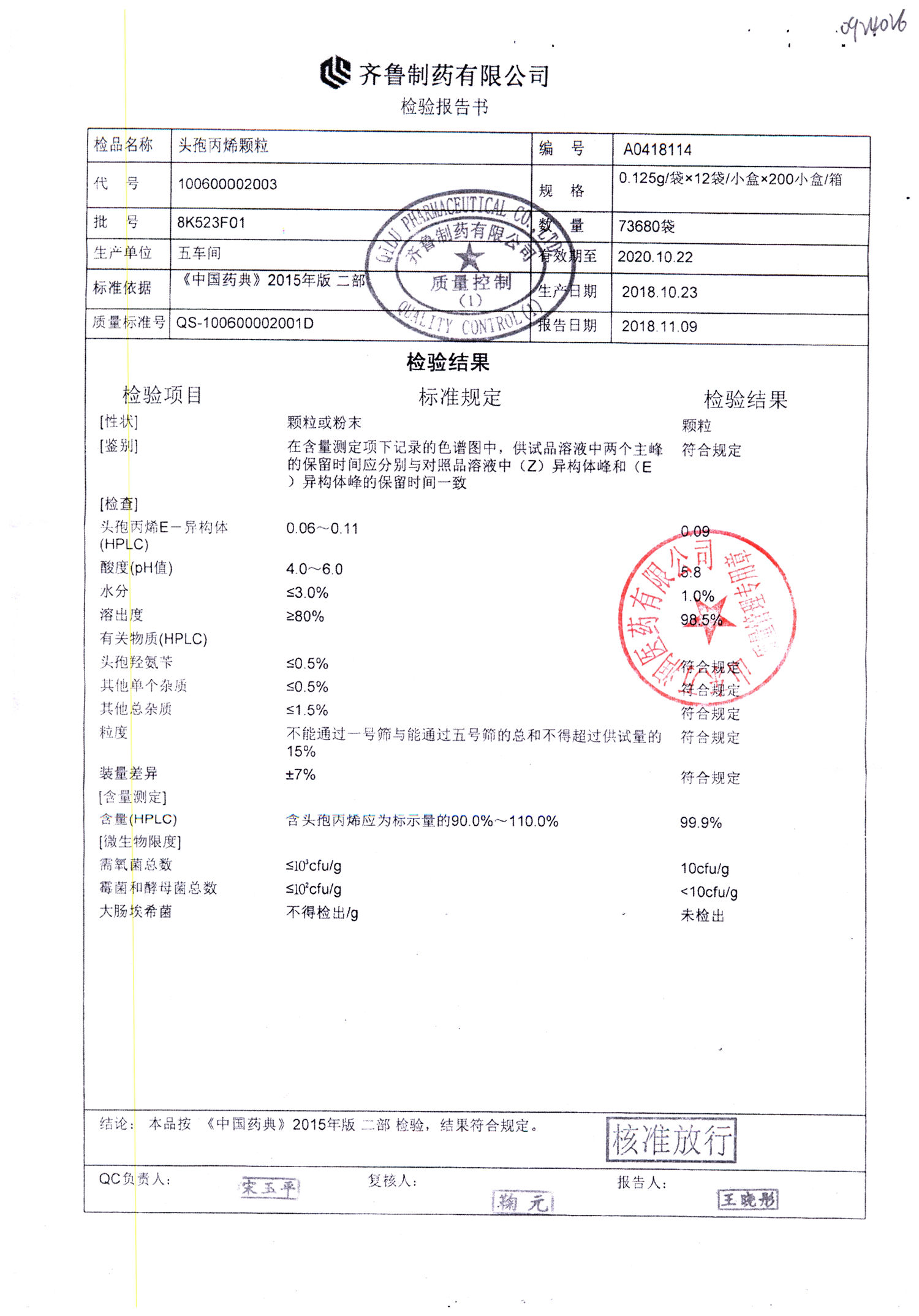 | 名稱 | 規格 | 批號 | 藥檢報告 |