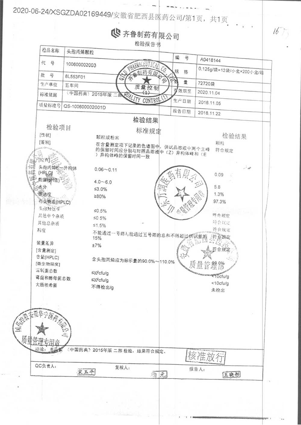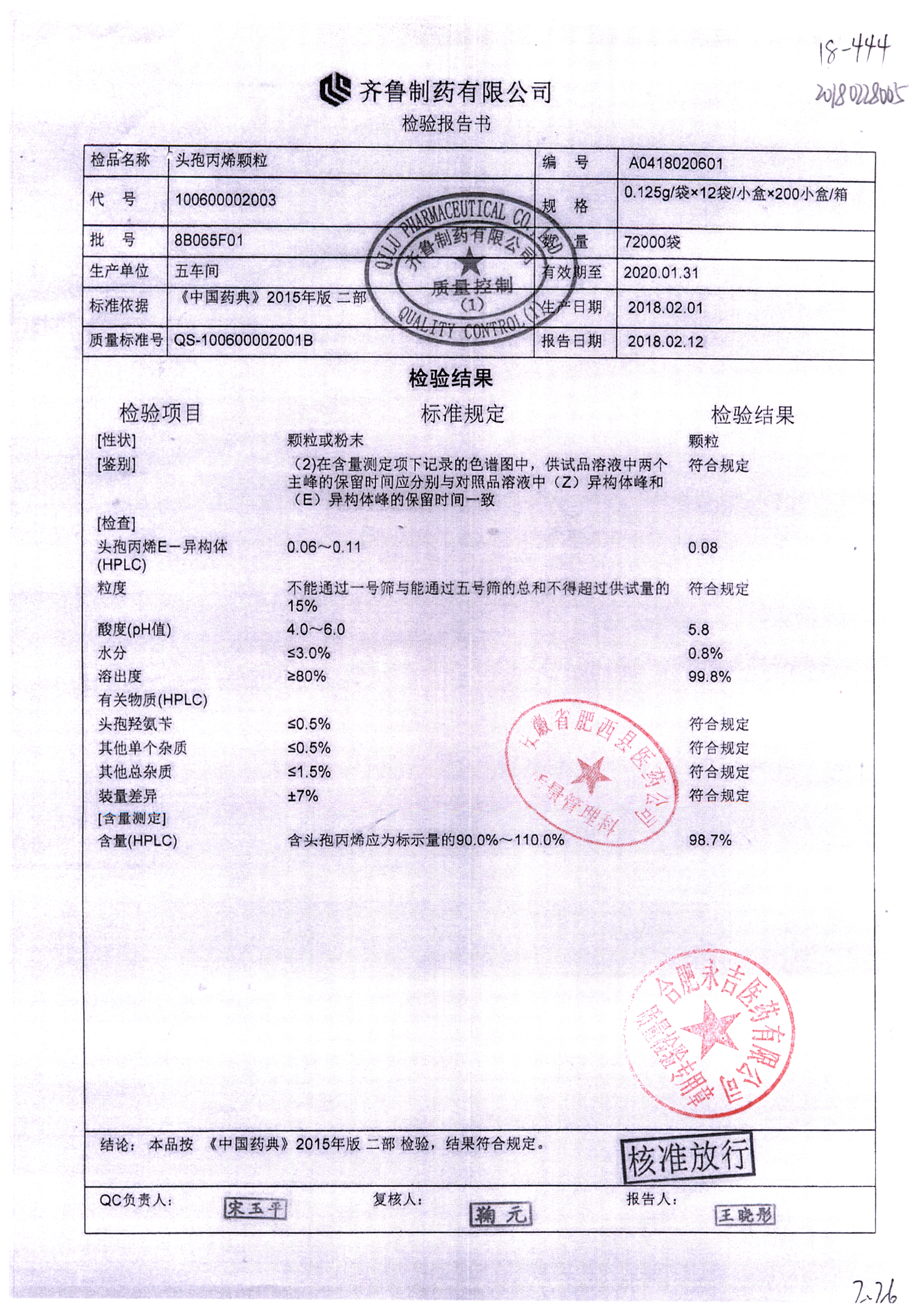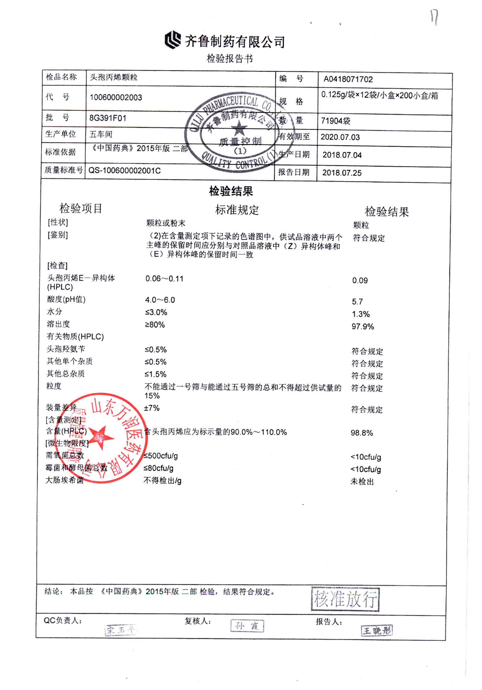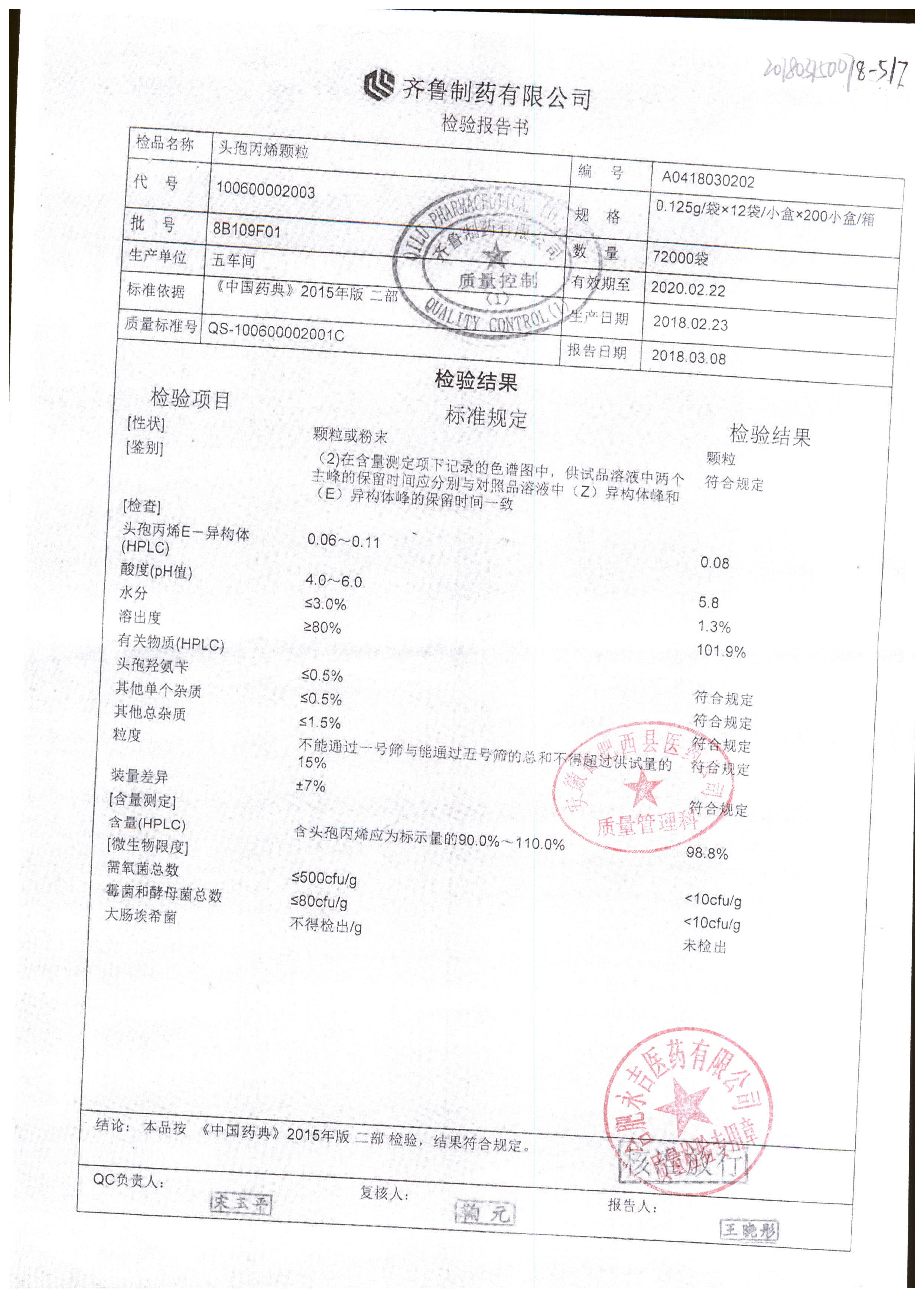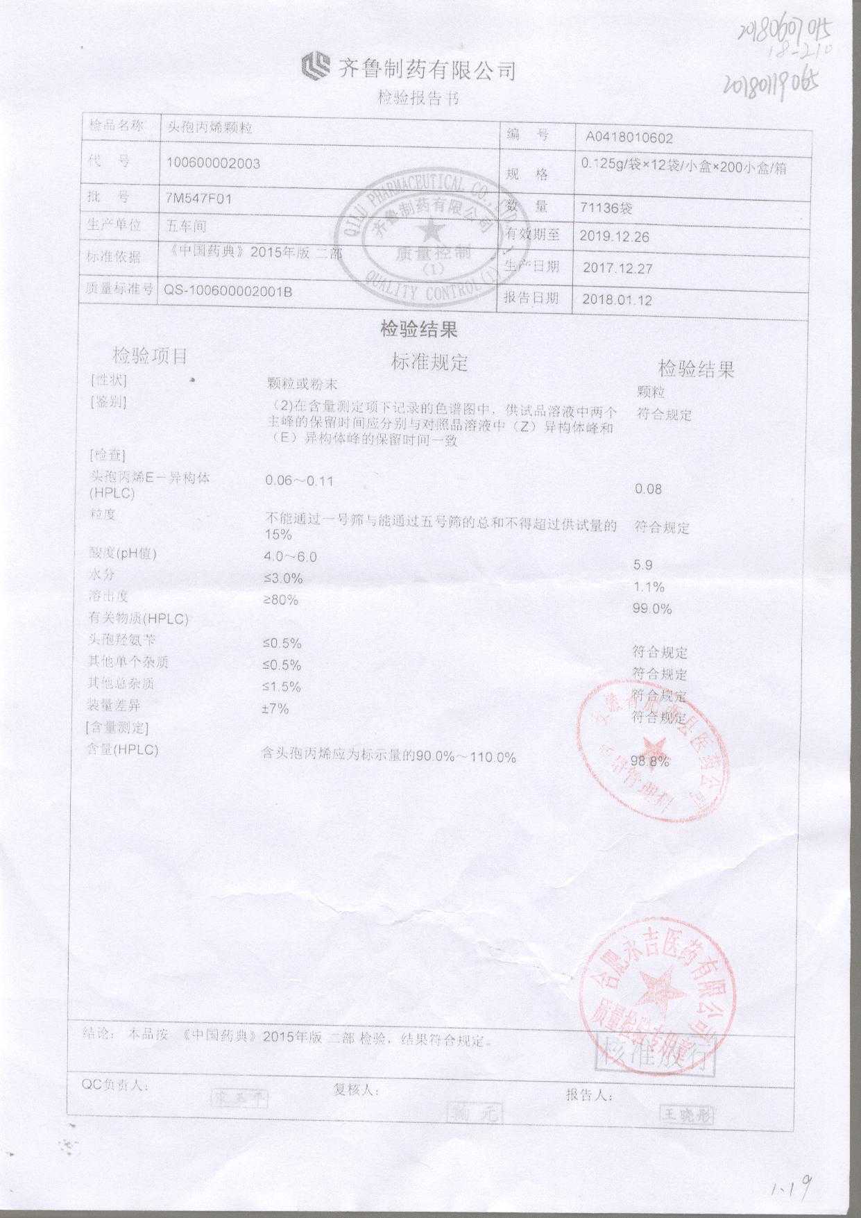 | 頭孢丙烯顆粒 | 0.125g*12袋 | 8L553F01 | 查看詳情 |